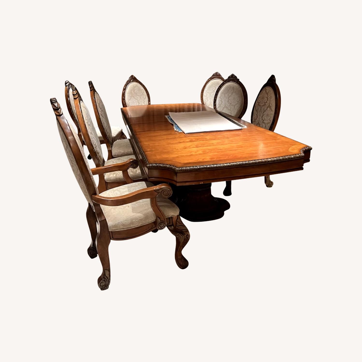 Seller's Notes:Original price $8,000, price negotiable. We are moving houses and are selling all of our furniture. This dining set is in great condition, has plenty of space for dinner parties and guests, and will make a great addition to your home. We will provide assistance with delivery, and the table disassembles to three sections for ease of placement.