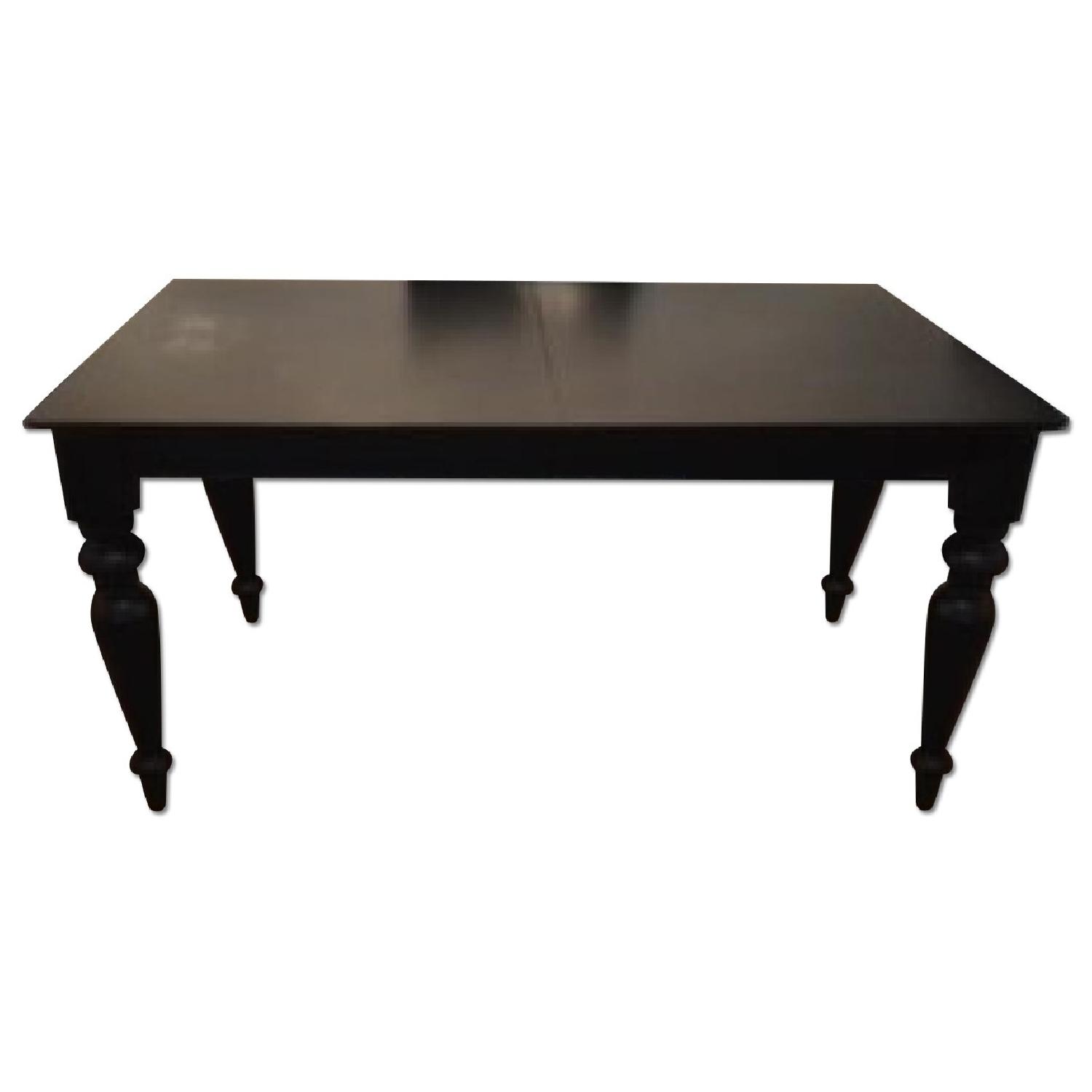 Seller's Notes:Custom designed farmhouse dining table. The table was purchased as "shabby chic" and so the scratches were present at time of delivery from Bassett furniture. There is a noticeable white stain on the table, as depicted in the pictures, that we have been unable to remove, but could potentially paint or try some other treatment on it. The table is solid wood and made in America. Seats up to 6 chairs. Dog in home is hypoallergenic and does not shed.
