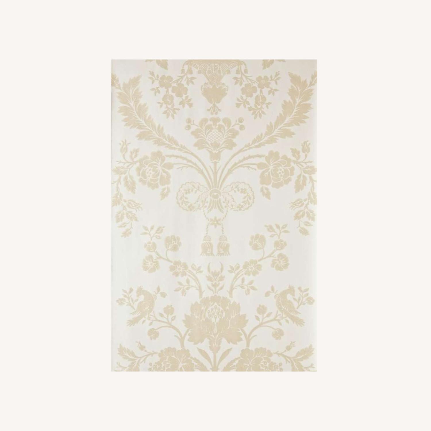 Seller's Notes:A full roll of Farrow and Ball's exquisite wallpaper. This is the St Antoine pattern in a beautiful velvety light grey pattern on a white/cream background. (Color is BP902). This is a beautiful and discrete pattern. A full roll is listed as 10 meters long on the website (I estimate 30 ft long based on the weight), 53 cm or 21" wide . This is a high quality 140 g per square meter heavy paper. From the F & B website: This opulent damask wallpaper is named after the place where its pattern was first produced, back in 1793. Today, its design of abundant blooms, preening birds and lush foliage adds a feeling of luxury to homes of all kinds.