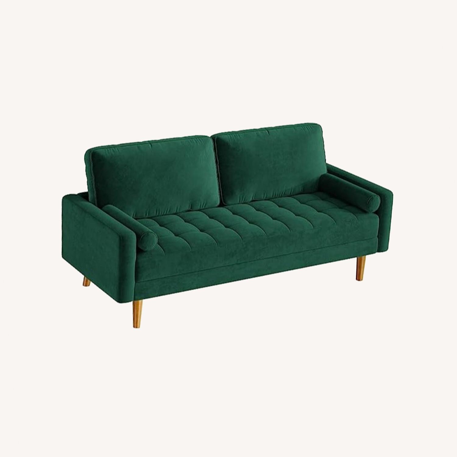 Seller's Notes:Vesgantti's cushions are neither too soft nor too firm. On a scale from 1 to 5 (5 being firmest), it's a 3. The combination of seat height, seat depth and back cushions gives you good support so you enjoy a more upright sitting position on the sofa. Seat cushions filled with high-resilience foam and polyester fiber wadding provide great seating comfort. Vesgantti high-quality small couch with low back design to support the back and waist, rescuing from fatigue! Classic shape & retro details--a typical Mid-Century Morden 3-seated sofa that will brighten your room with retro feel. The tufted design makes the velvet couch look unique and stylish. Obeviously, you'll love this sofa and so will your friends and family.