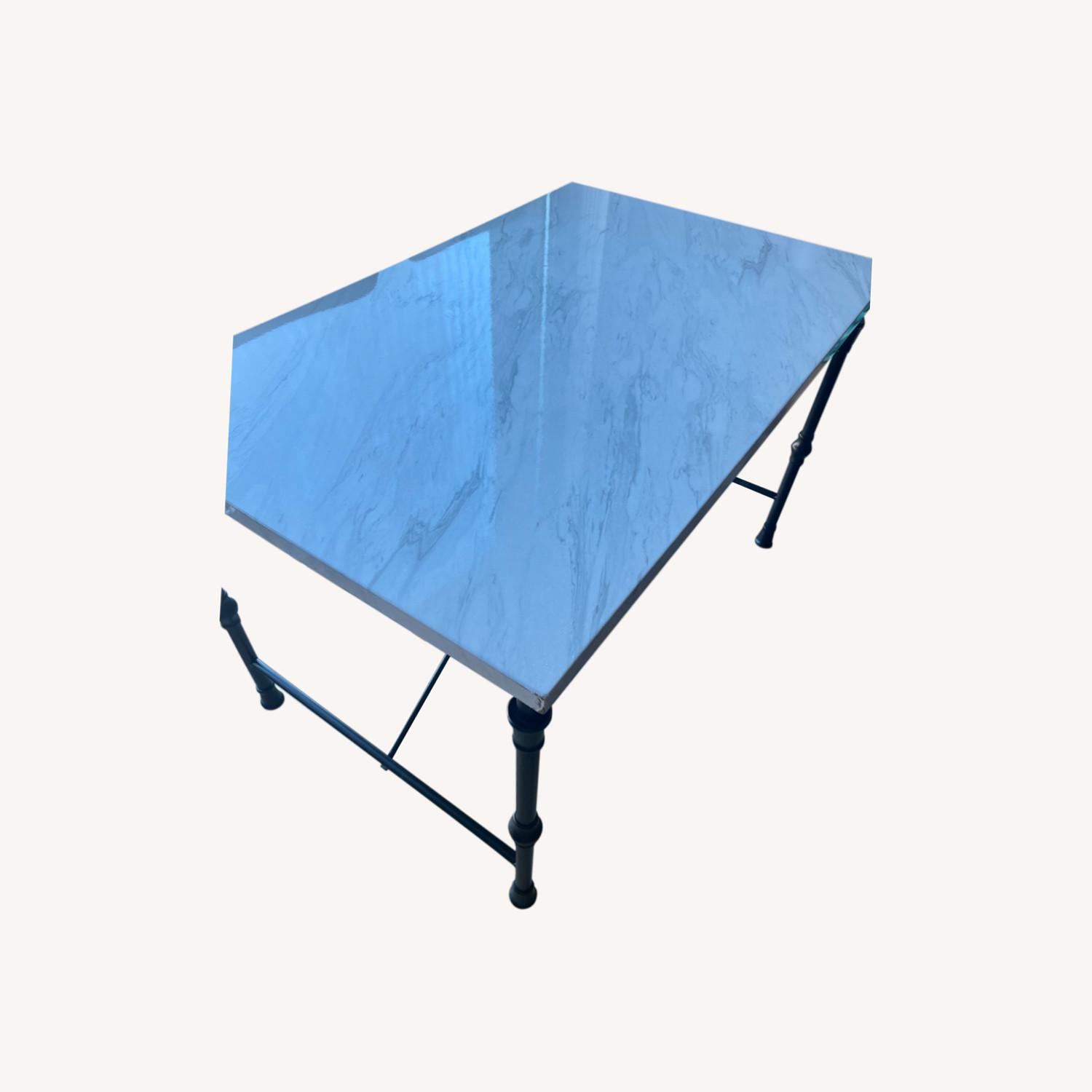 Seller's Notes:Faux marble kitchen table still in great condition!! It's incredibly sturdy and looks great! We'd keep but we're changing our decor style, but we've only had this table for 2 years It seats 4 comfortably (chairs will be sold separately!) please notice how the corners unfortunately all got a little dinged up. It's not obvious at least! And there's two little marks on top (the last 2 photos)- the last photo is me trying to show this one tinyyy dent i only just noticed in the top which yoj can only see when crouching down- I tried to show that in the last picture lol. Pick up only please and cash / Venmo only! I'm in Williamsburg if it helps. Measurements: 48" l x 30" w x 30" h