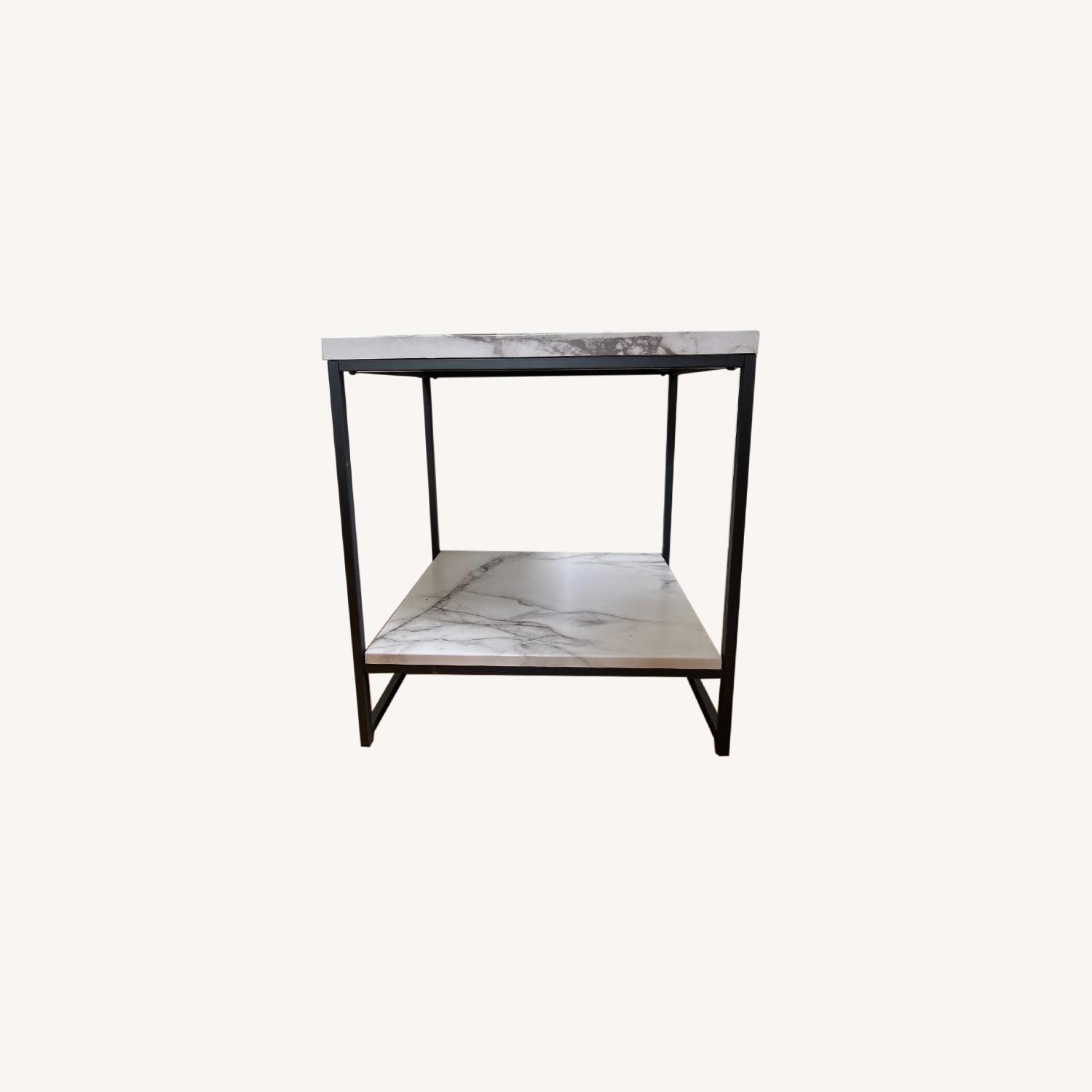 Seller's Notes:This coffee table is very modern and looks like a solid marble coffee table. It is made of faux marble and it is water and stain resistant. It is elegant and the legs are thin black metal. We've only used this table for ~6 months as a stand for our record player and it looks new. We are only selling it because we are moving to a new apartment where it will not fit.