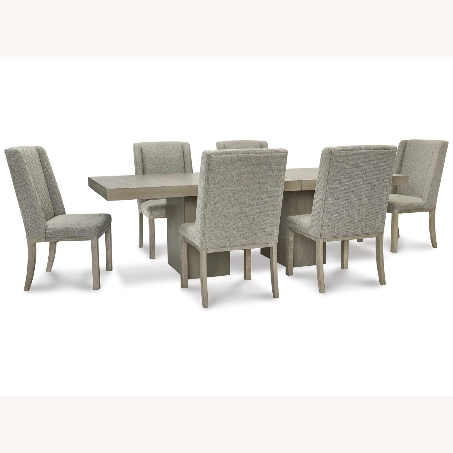 The Fawnburg dining package has a clean, contemporary design with a relaxed sensibility. Its sturdy silhouettes sport a trend-right gray taupe finish. For those inclined toward modern stylings, this set is sure to please.