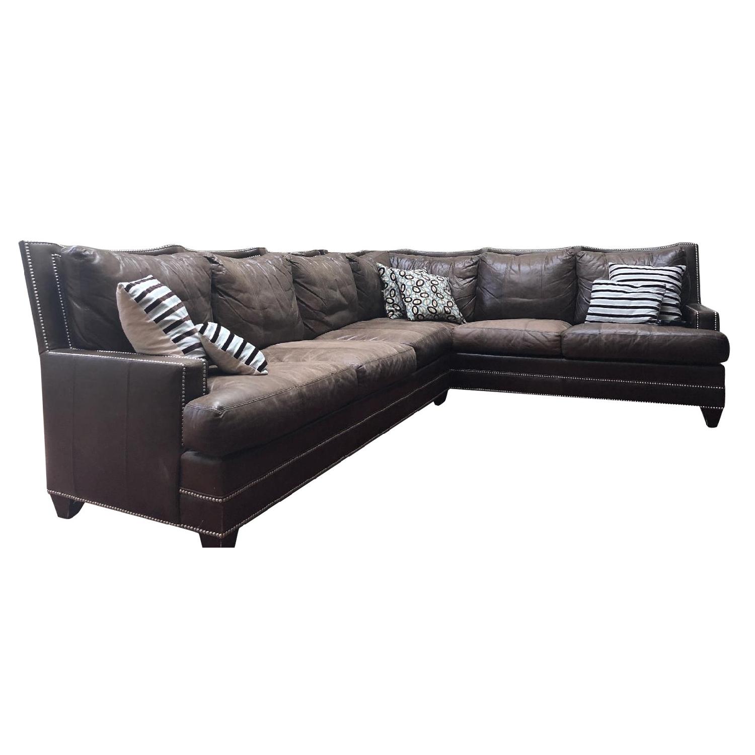 Ferguson Copeland Brown Leather Sectional Sofa w/ Nailheads