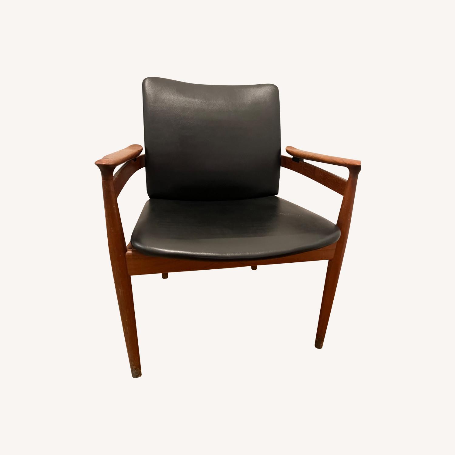 Seller's Notes:These two chairs are a gorgeous addition to a home, office, or home office! From the 1960’s, these authentic Finn Juhl diplomat chairs are used but still in fabulous condition. They spent many years unused in an office and then in storage. Hope to find them a good home for the future! Quantity & Price: (2) identical chairs available, sold as a set! *Open to discussing splitting up the set* Details: France & Søn (Manufacturer), Finn Juhl (Designer) Style: Scandinavian Modern Materials: Teak Hardwood & Leather Place of Origin: Denmark Period: 1960-1969