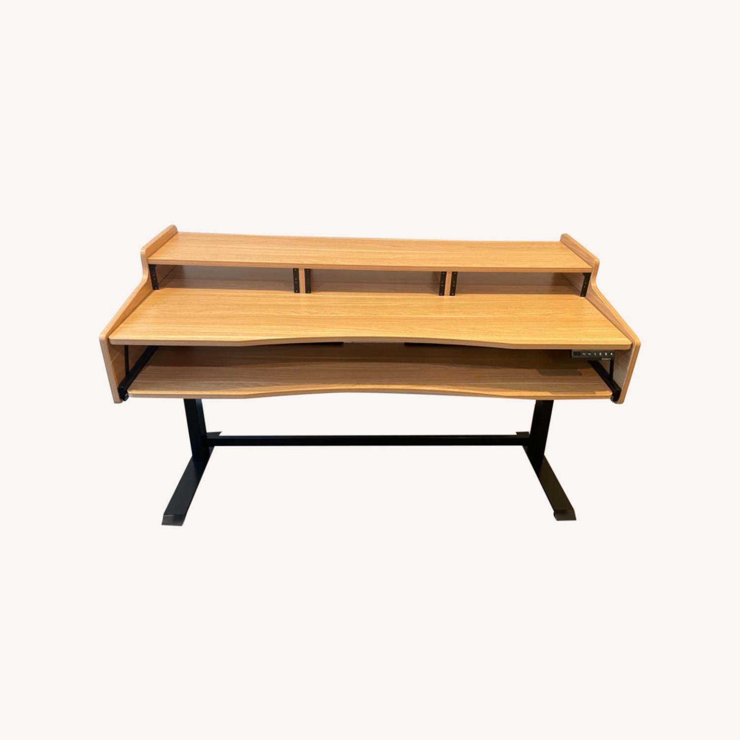 Seller's Notes:Excellent desk for musicians, podcasters, and other creative people. This sit/stand desk has motorized lifting and lowering, and a drawer large enough to fit an 88 keyboard. The built in shelves provide enough storage for other equipment and it also features a large work surface.