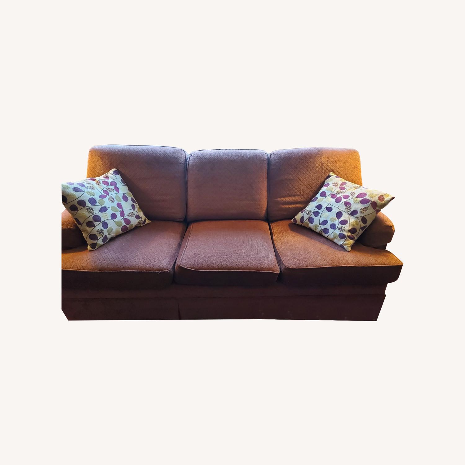 Seller's Notes:This sofa was originally at our family's vacation house. It is in great condition, because it was not used everyday. The color is more burgundy, than brown.