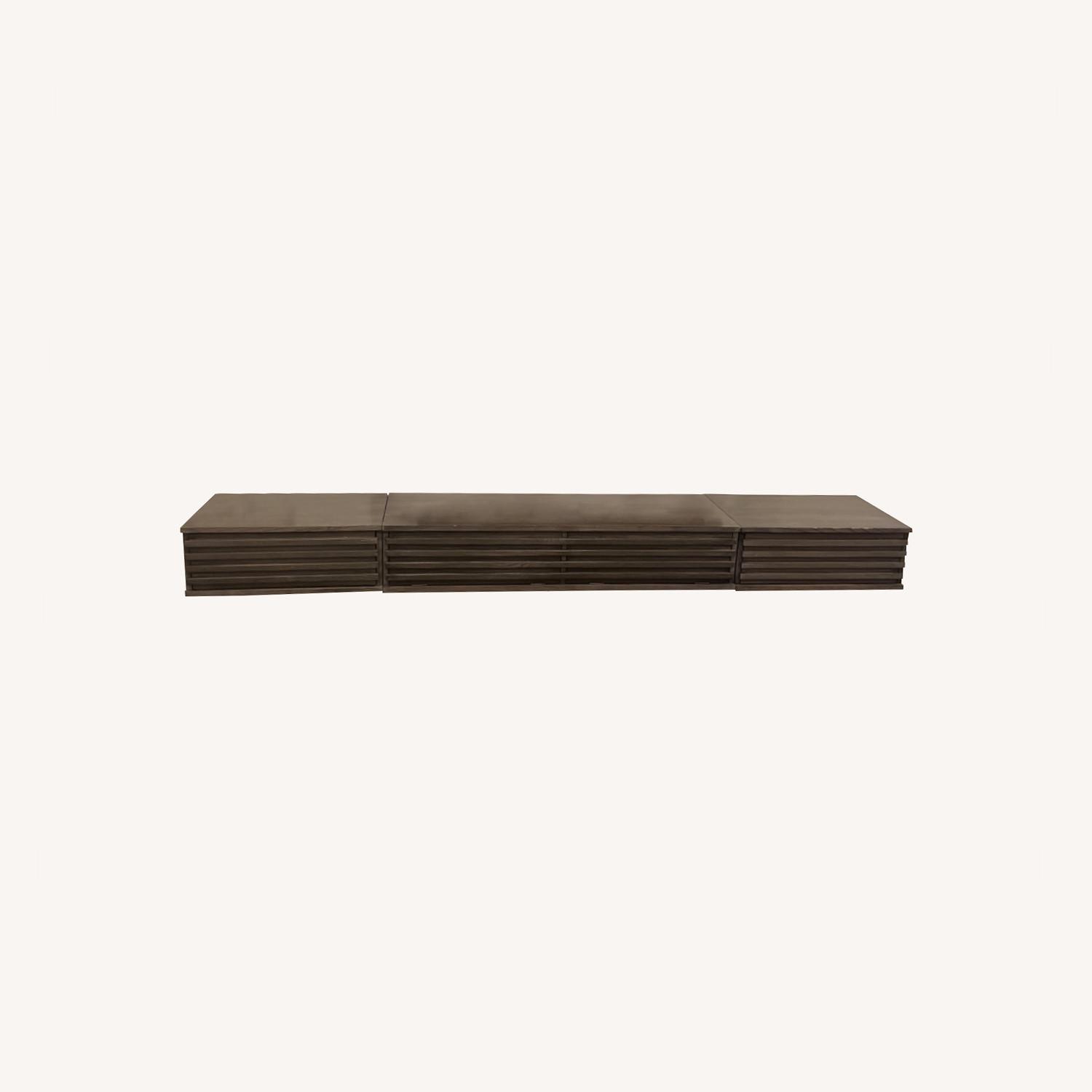 Seller's Notes:Custom made floating tv stand with two drawers and fold down compartment. Wall brackets included. Saves floor space, perfect for NYC apartments.