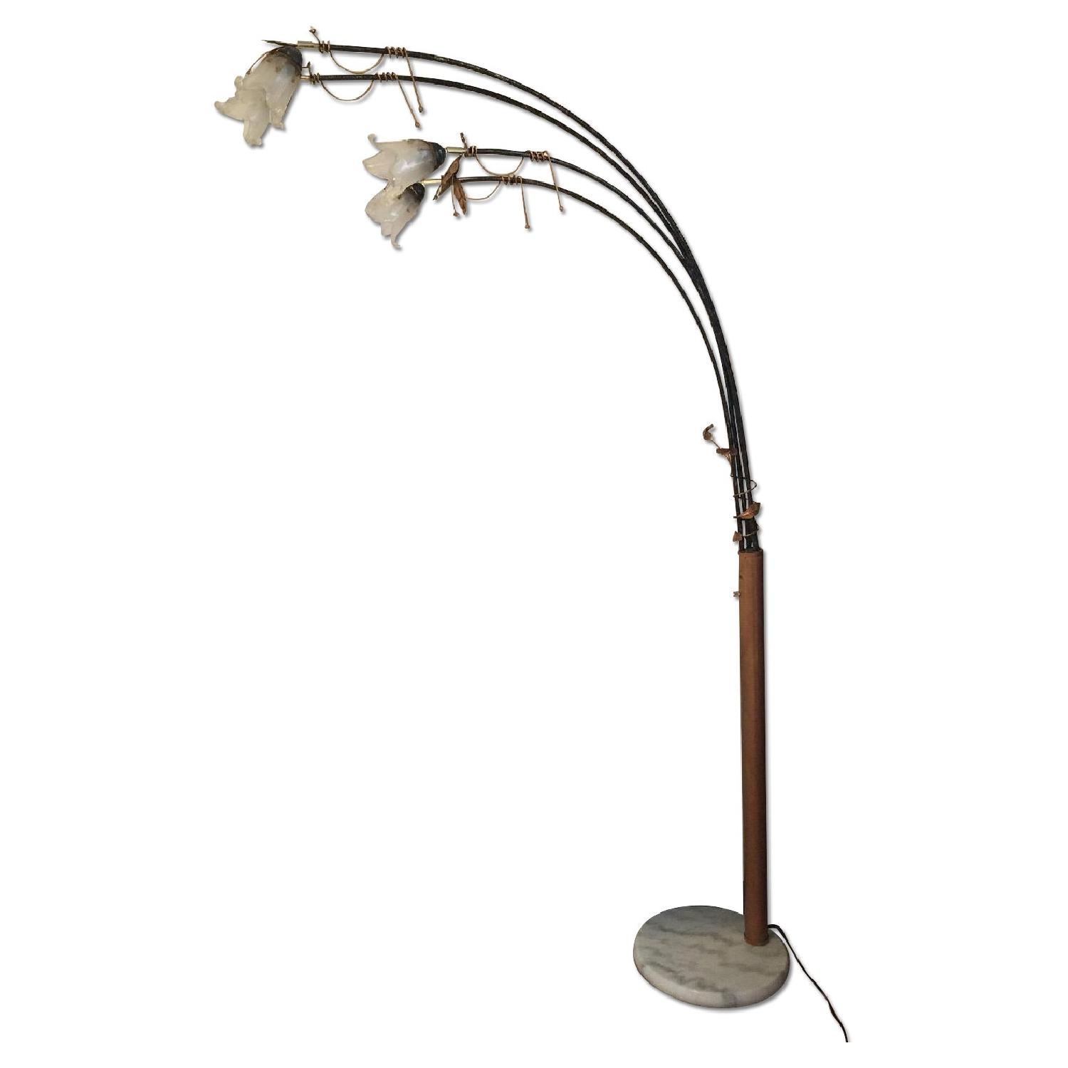 Seller's Notes:Floor Lamp Floral design with 4 blossom shape lanterns ( 120V 60 Hz) and metallic blossom shape decore Brand: OK Ligters Material: - metalic carcass - glass blossom shape ligters - marvel base Mesurements: - high (the highest point of bra) - 84.5'' - marvel floor base diameter - 15'' - carcass diameter - 7.5'' - width ( distans from the wall to the farest bra) - approx 51'' Contry of manufacturing: China !! this item is really heavy, bc of the marvel base