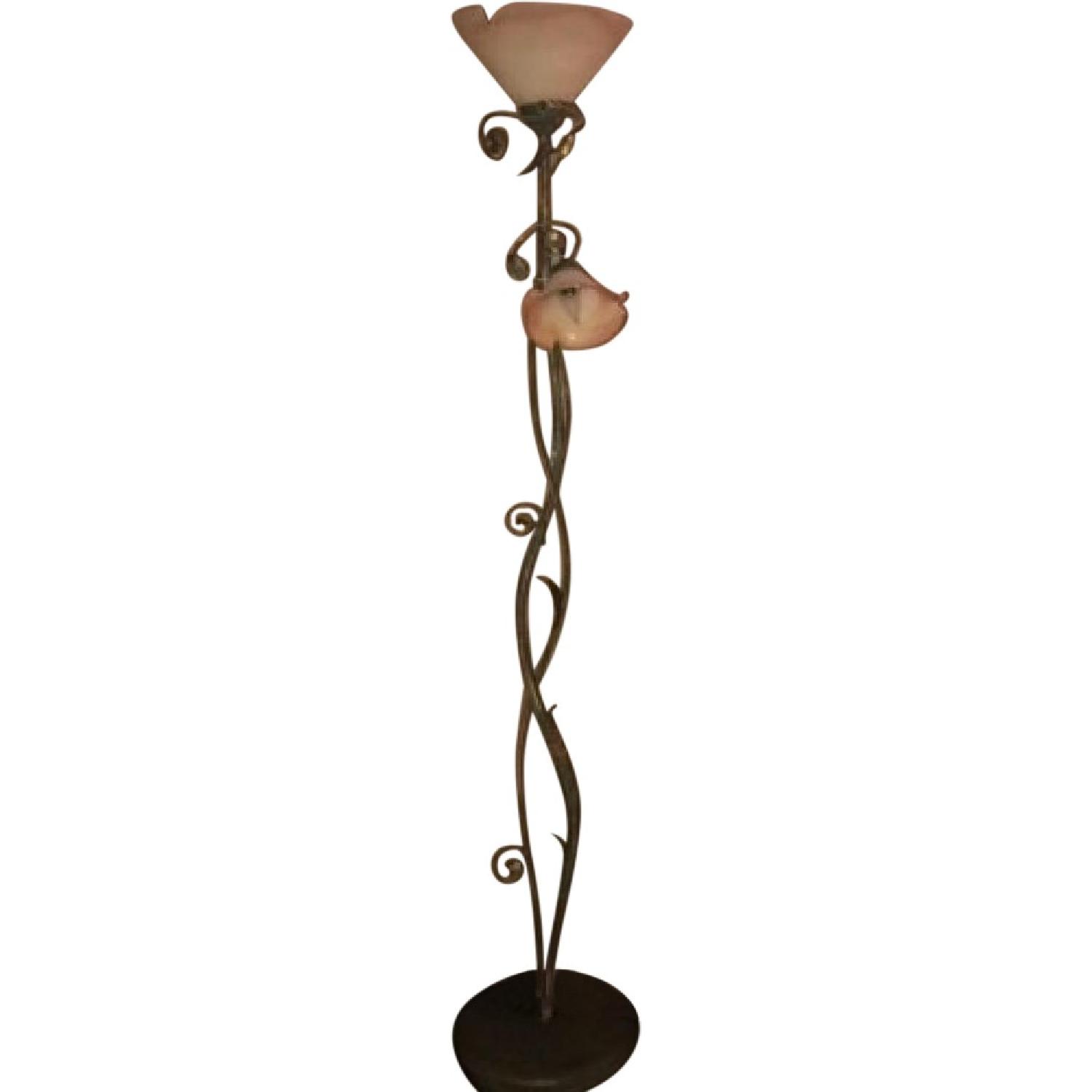 Seller's Notes:Beautiful Flower floor lamp Floor lamp, working, in excellent condition. Has floral decorative engraving along lamp post.