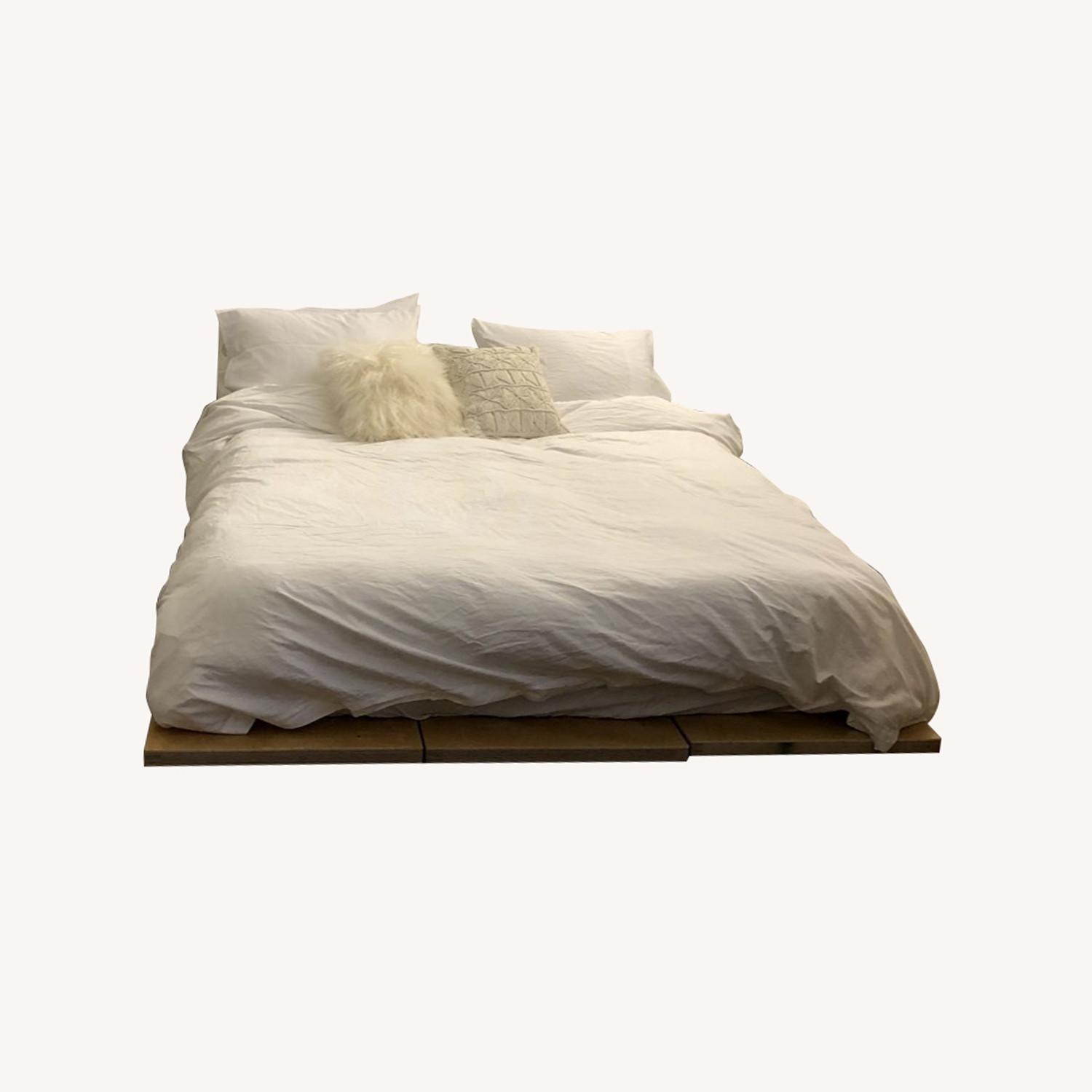 Seller's Notes:Floyd QUEEN bed frame in Birch (wood type/color) with white hardware. All natural wood veneer and steel supports. Good condition. No odor in home.