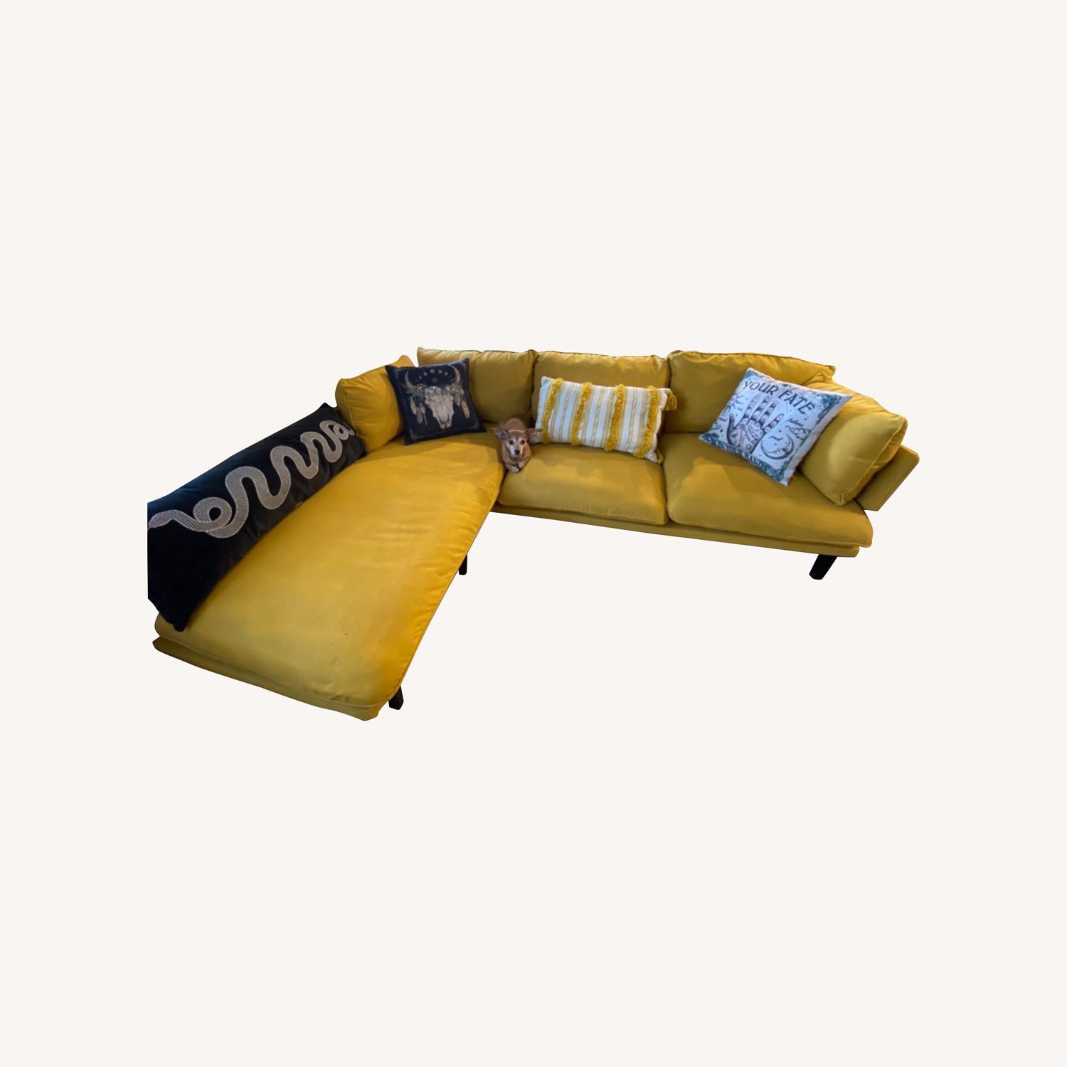 Seller's Notes:This is a beautiful brand that will last an entire generation. It was built to withstand pets and children. This sofa has Stain Resistant Fabric made up of: 95% polyester and 5% nylon Coated with short chain fluorocarbon-based treatment for stain resistance. It was specifically designed to fit through any doorway. 3 seats for all your friends, with the added flexibility of a chaise that can switch to either side, whenever you need. Simple, clean lines that look great from any angle meet comfy cushions upholstered in durable, stain-resistant fabric (in colors you actually like). Powder coated steel legs and an upholstered frame make for a sturdy base, while a hidden padded panel adds extra comfort and eliminates cushion slippage. Built to assemble and disassemble with ease. This served its purpose for my family. My partner has recently passed away, therefor my living situation will no longer allow the capacity for this beautiful addition.