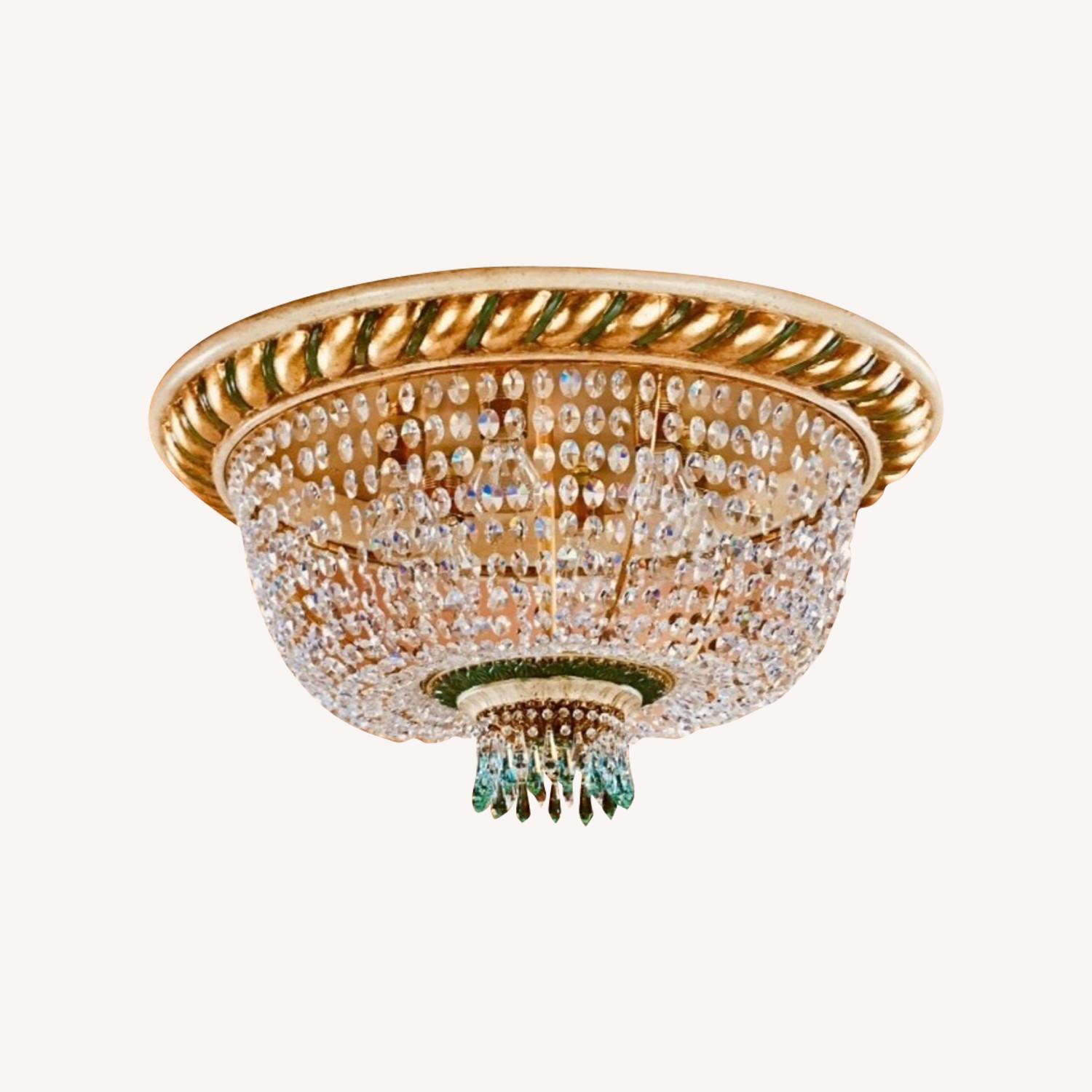 Seller's Notes:Swarvorski flush Mount with crystal ivory, gold leaf with green Murano glass made in Italy