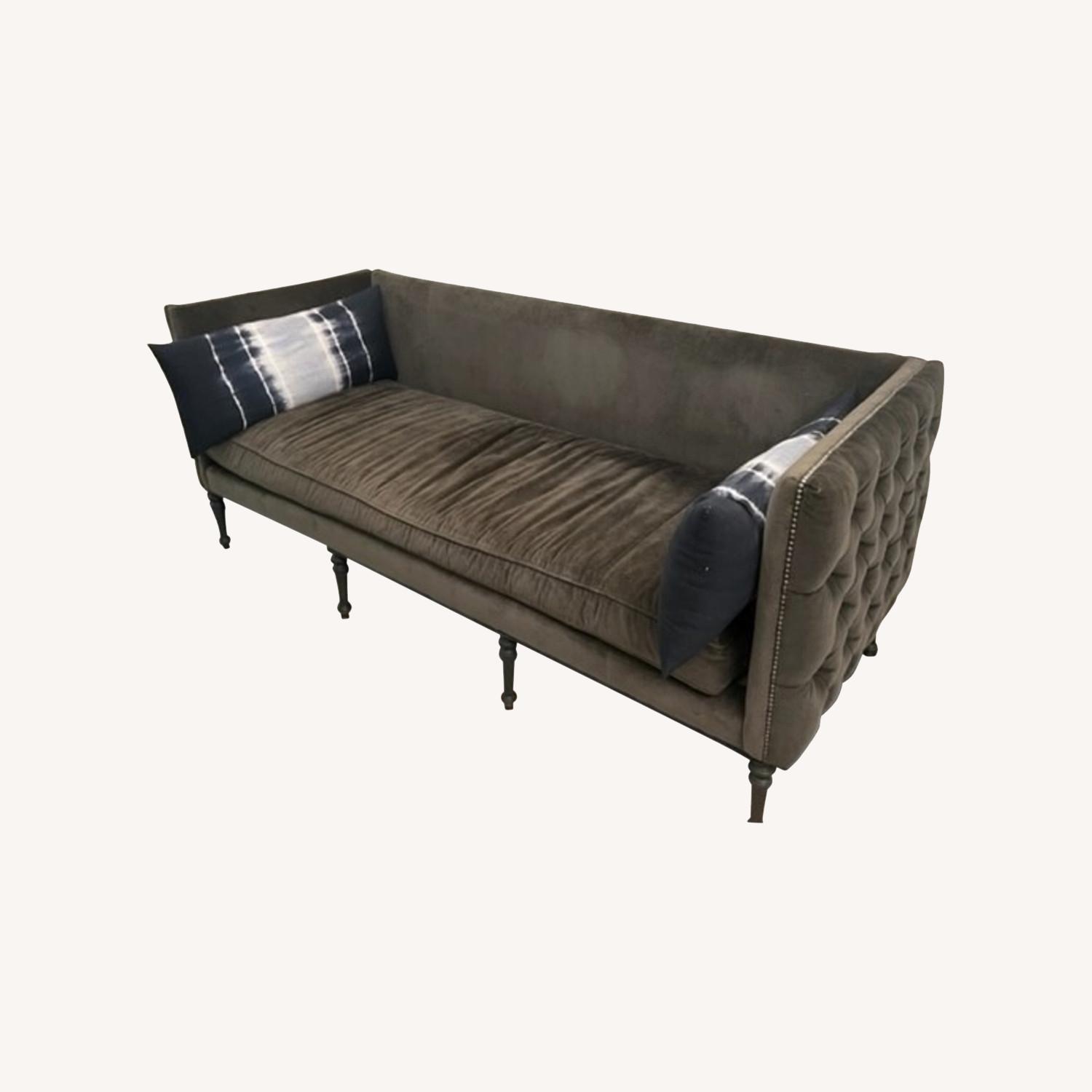 Seller's Notes:This couch is about 10 years old but has been in a formal living room, seen minimal use and is far from windows/light so it’s close to like new. It is 87” wide, 34” deep, 36” tall. No stains and the “feet” show just some slight wear and tear. The fabric pattern you see on the outside creates a very versatile piece as it looks beautiful against or away from a wall. Pillows and the bolster come with it if you want.