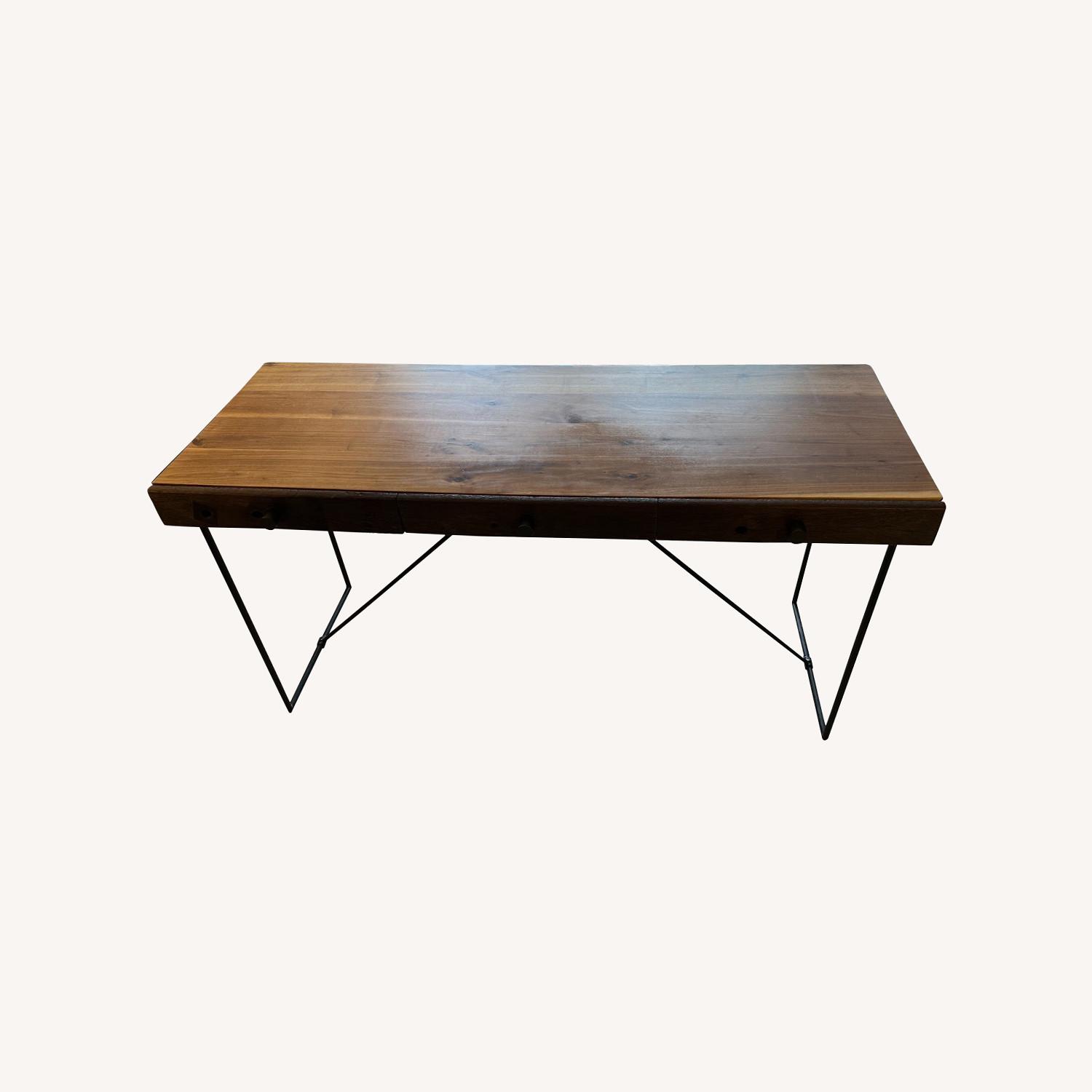 Seller's Notes:Reclaimed wood desk with 3 drawers - the Wright desk from Four Hands' Bina Collection. More details here: https://www.malouffurniture.com/item/bina-wright-desk/179139613 Dimensions 60" W x 24" D x 30" H Bought new from ABC Carpet & Home about 9 years ago. Minor signs of wear but hard to tell with the reclaimed wood look. Heavy but extremely sturdy.