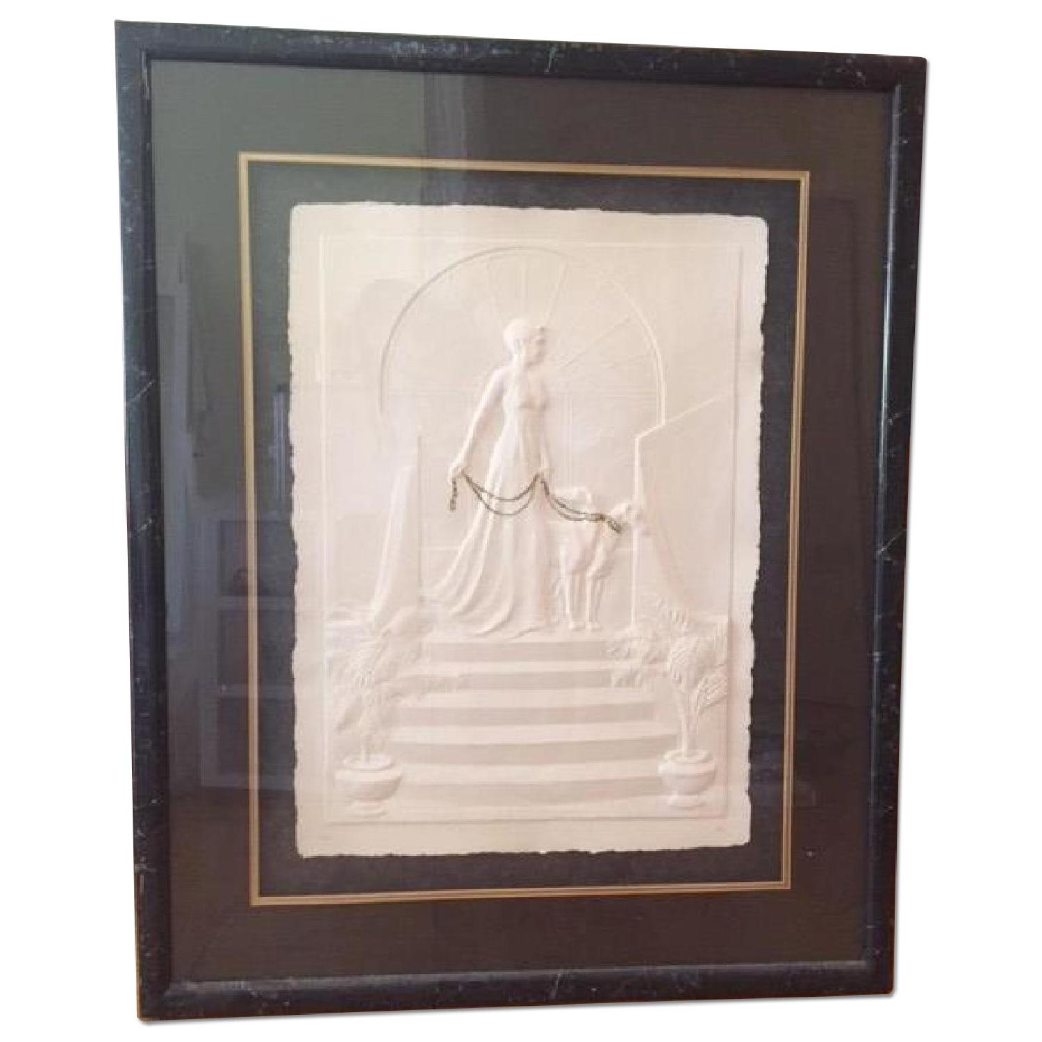 Framed Embossed Drawing of Woman & Dog