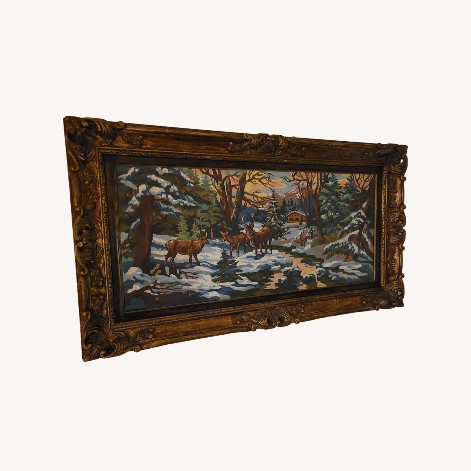 Seller's Notes:Magnificently framed masterpiece. Winter scene- impeccable detail. The frame itself cost $700.00