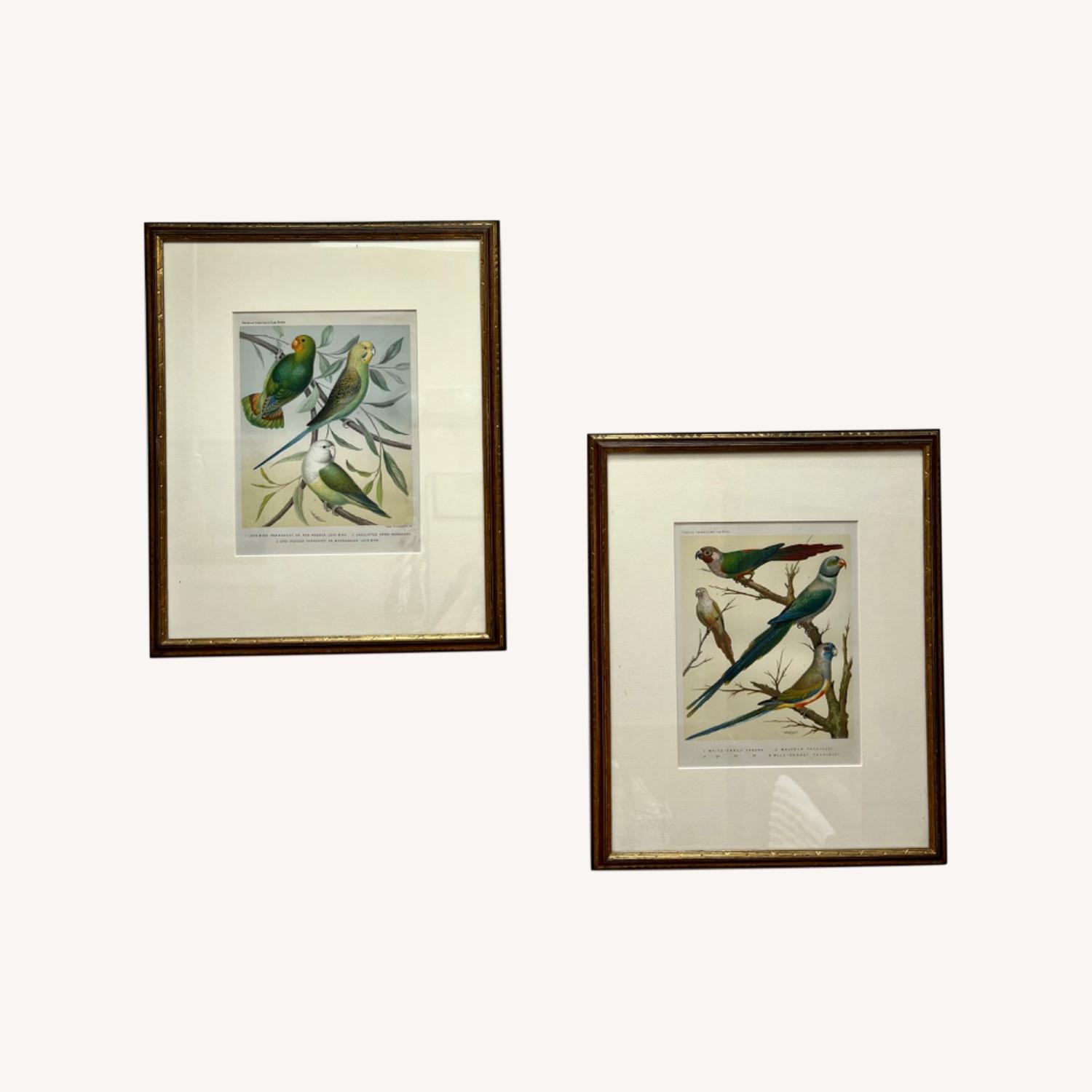 Seller's Notes:This is a pair of framed chromolithographs called Parakeets by Rutledge for John Cassell’s book circa 1880s from “Cassell’s Canaries, and Cage Birds”. These are also quality frames with light “gold” detail as pictured. Perfect for any bird lover or anyone who has birds or had birds as a child! I had parakeets when I was young. I purchased these from Clary & Co Antique’s on Bleecker St in the Village of New York. I have had these parakeets and lovebirds in the living room and the bedroom. I have not opened the frames. There is a water stain on the frame’s backing as pictured but image does not appear stained from the front. There is no smell. Author is John Cassel, Artist is Rutledge. #birds #pairofbirds 14.5” W x 3/4” D x 17 3/4” H I’m open to the idea of selling them individually. Don’t forget - aptdeco will deliver if you want; Love this company - I was a fan while living in New York.