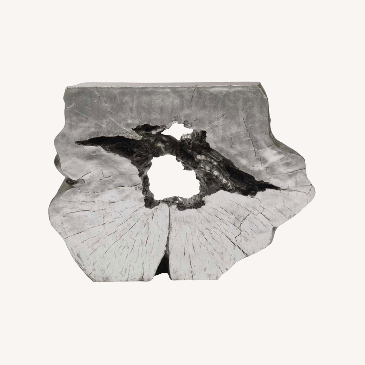 Seller's Notes:A modern and functional work of art. Create a stunning focal point with this console table, well-sized for many spaces. Cast in resin from the root of a fallen tree and silver leafed. Easy to imagine in an entry, hall, or living area with a mirror or artwork above it. With a wide selection of modern and classic styles, our extensive range of tables offer the perfect blend of function and form. Our stylish coffee and cocktail tables create an inviting center for your living areas in a wide selection of stunning finishes. Add an occasional table for a bold lamp and your favorite book. Or arrange your treasured objects on a versatile console table. Experience our collection in the comfort of a Signature Store. style: AC11084-CNT 42 in. width x 12 in. depth x 31 in. height resin silver leaf weight limit 75 lbs