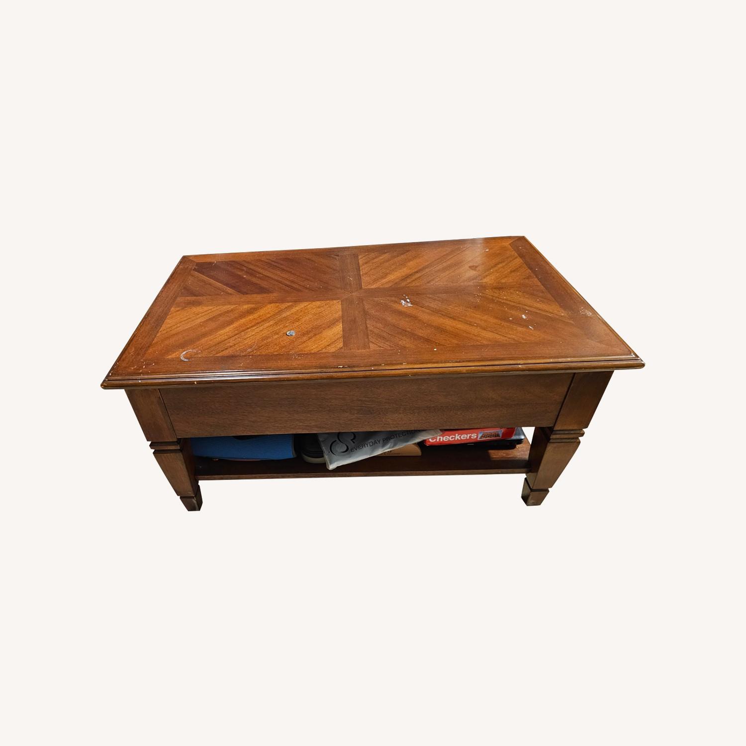 Seller's Notes:Nice coffee table, brown color,has 2 litle drawers.