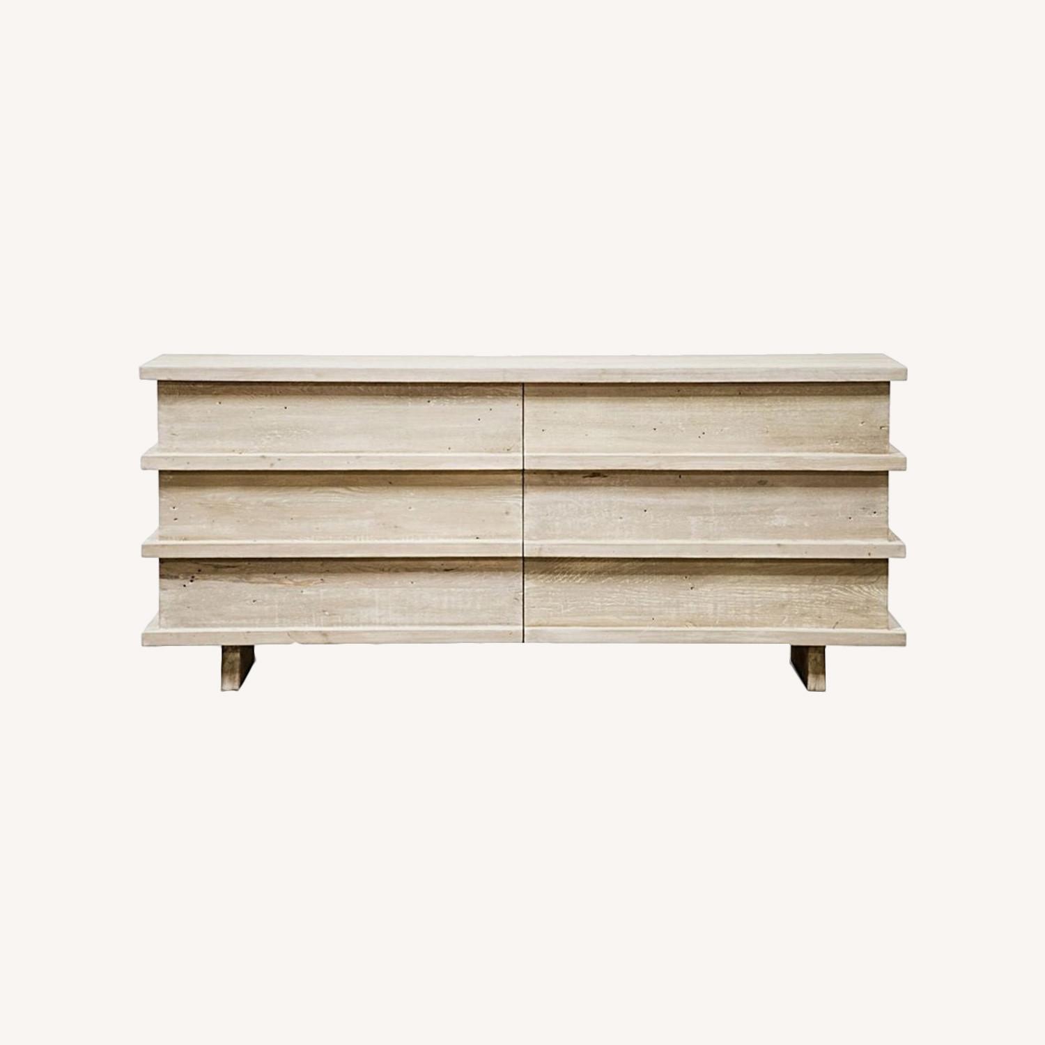 Seller's Notes:From the neutral gray finish on the reclaimed douglas fir wood to the edgy modern silhouette—we love it all on this dresser. Six spacious drawers offer plenty of storage and rectangular plank legs give the piece of bedroom furniture a streamlined elevated feel. It's the perfect place to prop your favorite oversized art print and a sculptural table lamp.