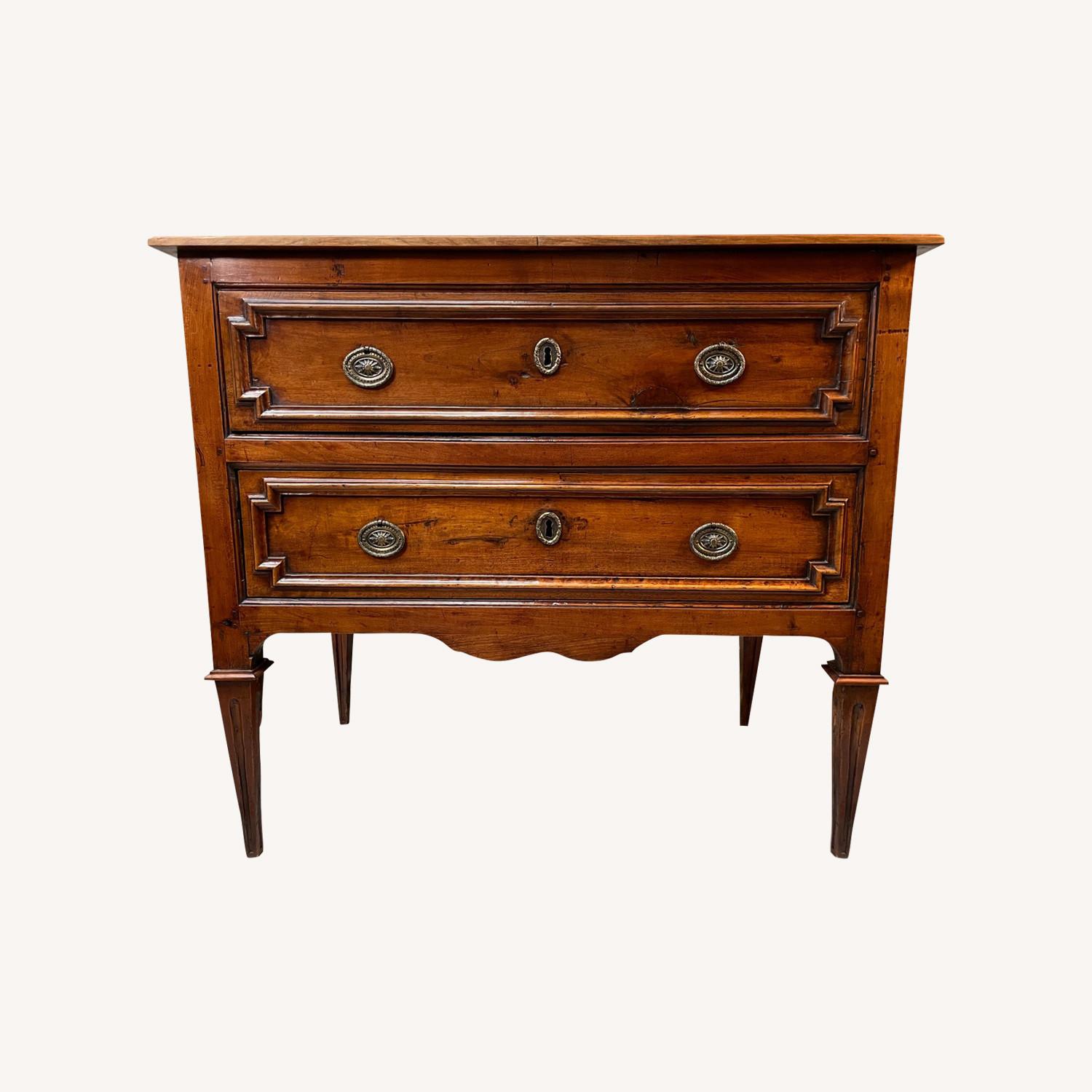 Seller's Notes:This beautiful French Neoclassical chest of drawers with spectacular dovetailed engravings has seen lifetimes pass it by. Made in a time when furniture was created to be seen as a luxurious art form; with a delicate touch, but strong roots for lasting use. Being made from walnut and cherry wood, it has been able to stand strong and tall for over two centuries. It has been worn lovingly giving it its rustic, mysterious aesthetic. The color radiates warmth; as if it is welcoming you with open arms. It can brighten up a room, and give a sense of wonder and comfort. The final details of this piece is having its original, hand-forged locks and keys made of brass. Everything about this piece is authentic in its purest, most original form. It is just waiting to begin a new life in new home. PERIOD: Late 18th Century CONDITION: Good Condition, Original Condition Unaltered, Some Imperfections MATERIALS: Brass, Cherry Wood, Walnut COUNTRY OF ORIGIN: France For Oversize or Furniture Deliveries Please contact us for an estimate. We issue custom delivery quotes based on your location zip code and the item(s)in the order. White Glove Shipping basic $350-$650 (dependent on size of item) to most US cities - final cost to be determined. Kipper's own local delivery is to your doorstep; contact us for estimate or to arrange your own pick-up service: Local Los Angeles delivery: $150 fee Palm Springs/Montecito/San Diego delivery: $175 fee. NOTE: vintage and antique furniture will have age-consistent wear. Many pieces may have had repairs or may have been customized in the past. We strive to maintain as much of the original handiwork as possible. We take care to be sure our photos and descriptions are an accurate representation of each piece. Please ask for additional pictures of details if necessary to aid in your decision. We will make sure your items are in the very best condition per description when shipped to you.