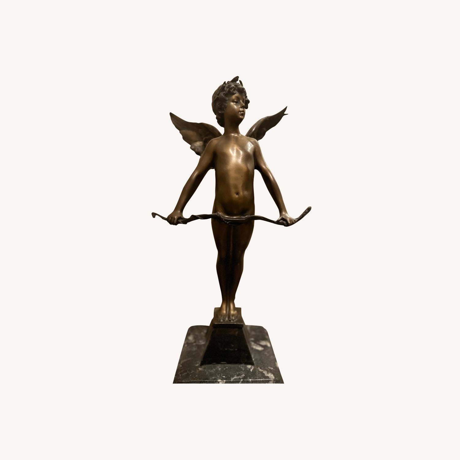 Seller's Notes:Bronze collector's item- marble base Signed under base Beautifully detailed bronze of winged angel boy. (Near Mint). 24 - 1/4" x 6". Auguste Moreau French sculptor