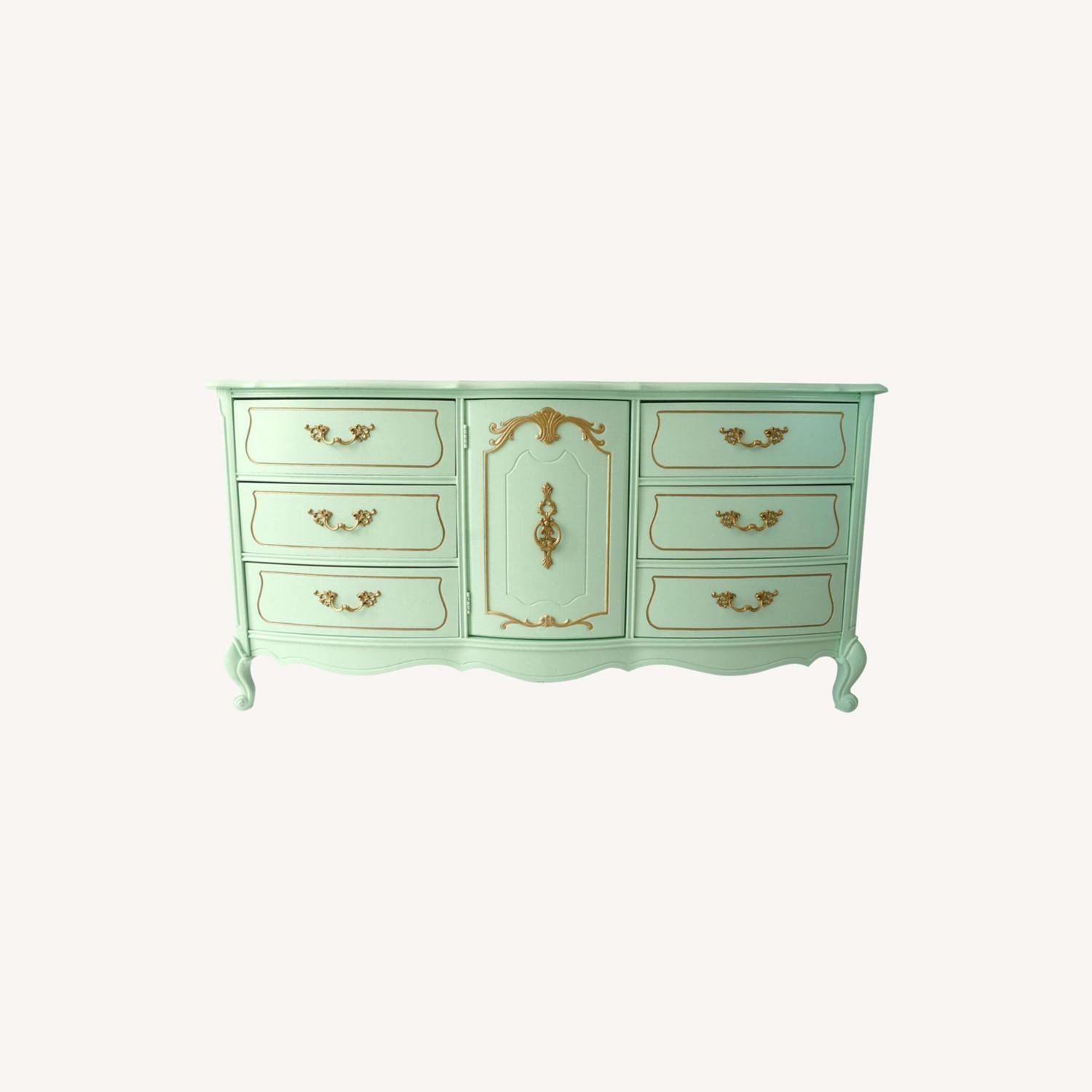 Seller's Notes:Purchased from a vintage seller 2 years ago for $800. I've loved it but selling to make room for new pieces. Great storage, all drawers open and close very smoothly. Very light pistachio green (lighter than pictures).
