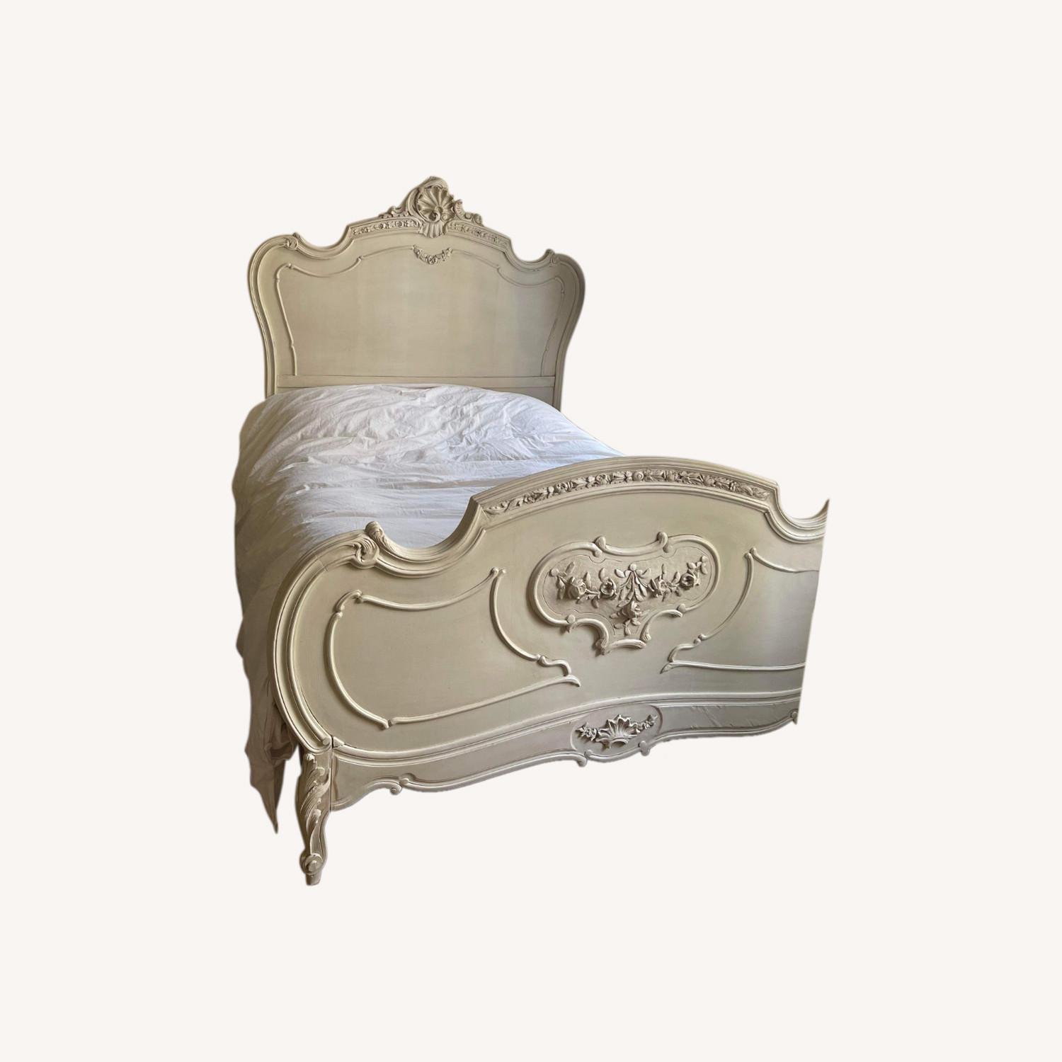 Seller's Notes:I am sad to see it go, but it's too big for my apartment. Asking for what I paid + delivery fees. Gorgeous vintage condition, with cracks and knicks to be expected. Authentic Louis XV bed frame with hand carved decorations. Side rails with mechanical locking mechanism included.