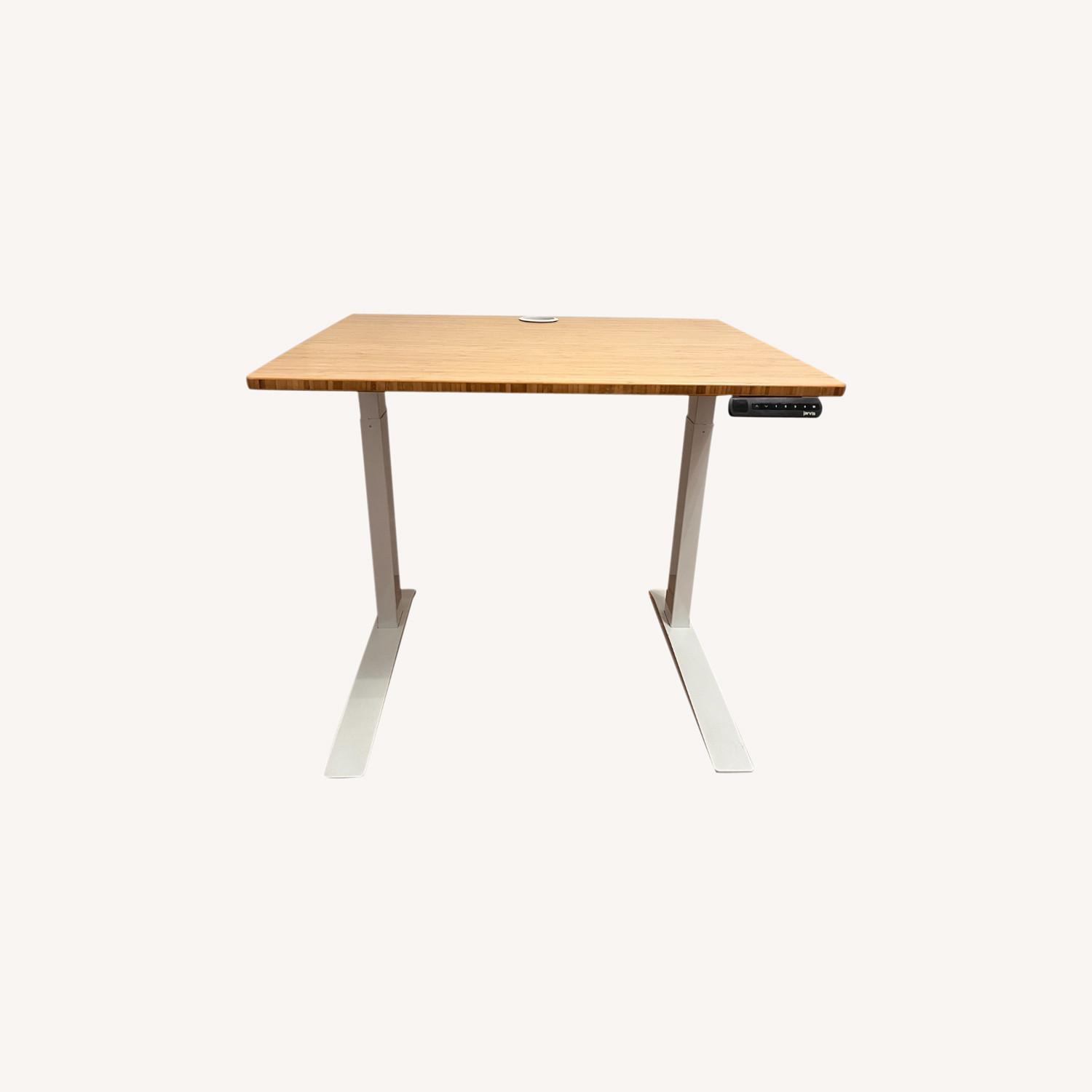 Seller's Notes:Desk Heights from 27.25" to 46.5" Bamboo top is 36"X27" The frame of the desk is white w/ programmable handset