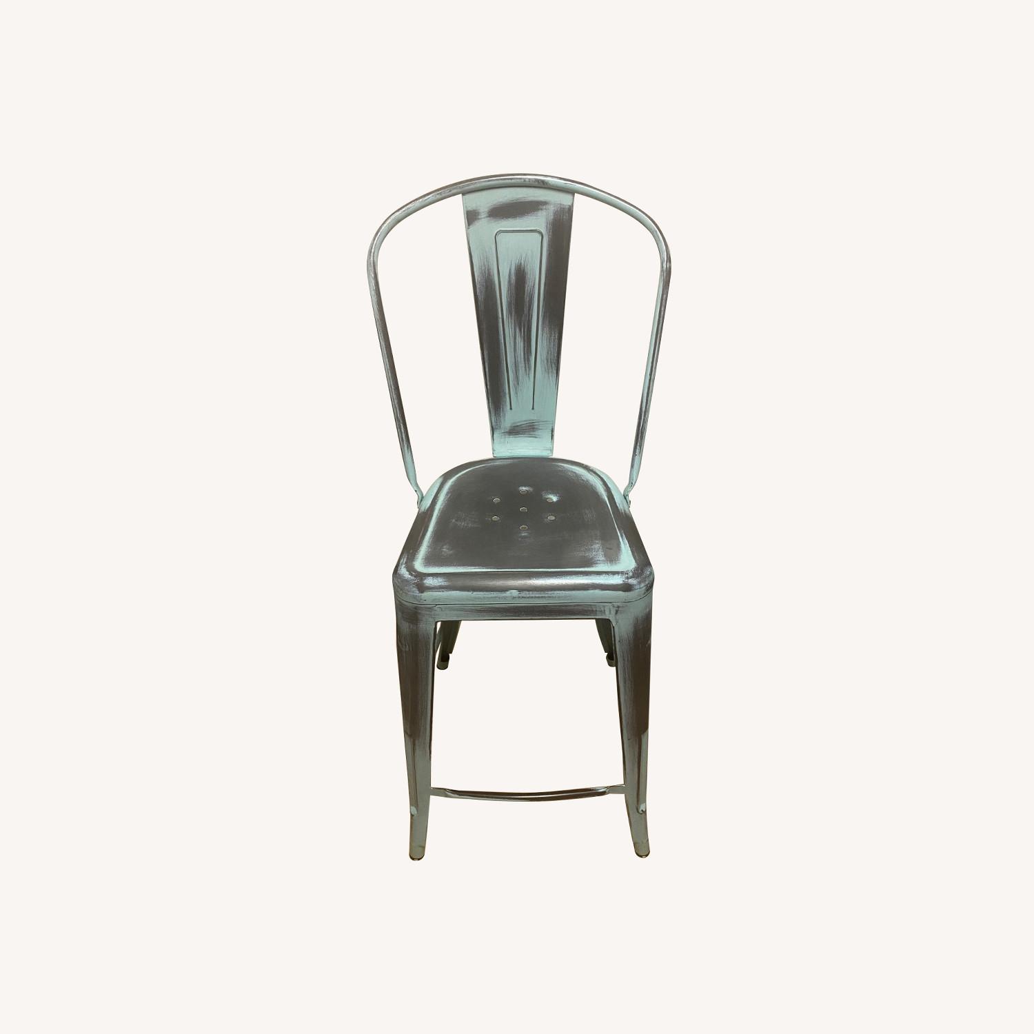 Wear and tear details: The chairs are turquoise with a distressed finish, excellent condition.