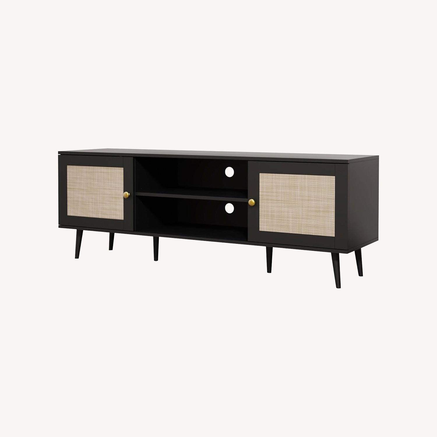 【Elegant Rattan Design】- This low-profile TV stand combines natural wood tones and woven rattan doors to bring warm, organic texture to your living room or sitting area. The farmhouse-inspired design blends seamlessly with boho, coastal, or modern rustic decor, adding a touch of relaxed elegance to your space.