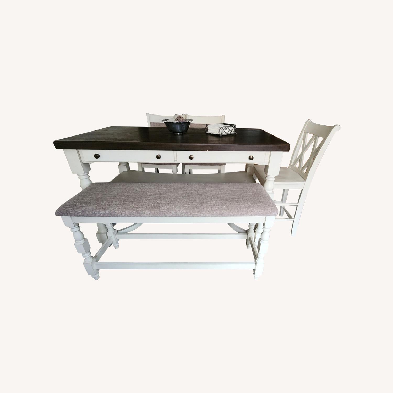 Seller's Notes:Counter-high dining set, originally came 4 piece but we bought another chair of the same height and color finish. Comes with 2 drawers