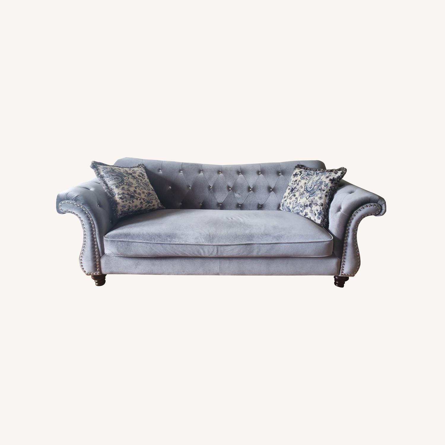 Furniture of America Velvet Tufted Light Grey Silver Sofa
