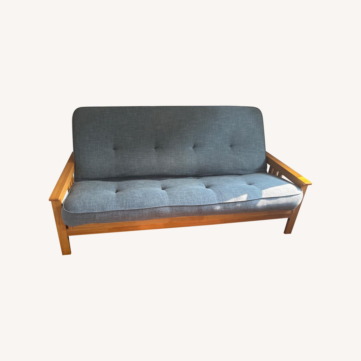 Seller's Notes:I’ve had this futon for 4 years or so. It’s a comfy couch, and easily turns into a comfy guest bed. It’s sleek, and in great condition. It is on the heavier side.