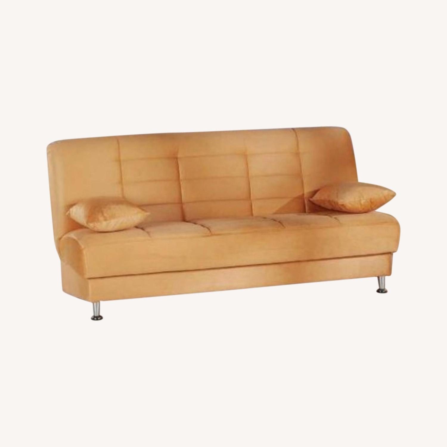 Seller's Notes:Three seater futon in great condition (very lightly used) with storage underneath, folds out to a full sized bed, originally purchased for $800, looking for $500 OBO Pick up only! Elevator is out in my building and I'm on the 6th floor. Product info: The Vegas Sofa/Bed upgrades the futon idea to create a substantial, multifunctional sofa sleeper that will complement the most elegant and sophisticated home decor. When company calls, this luxurious sofa transforms into a large, comfortable full-size mattress with plenty of room to stretch out. The seat lifts up to reveal a shallow divided storage compartment for keeping blankets and bedding quickly accessible. Features: High-Density Cushion Clik Clack Mechanism Converts to Full Size Bed Under Storage Compartment Upholstered in Microsuede Dimensions: Sofa Size - 78.4" W x 35.4" D x 38" H Bed Size - 78.4" W x 47.2" D