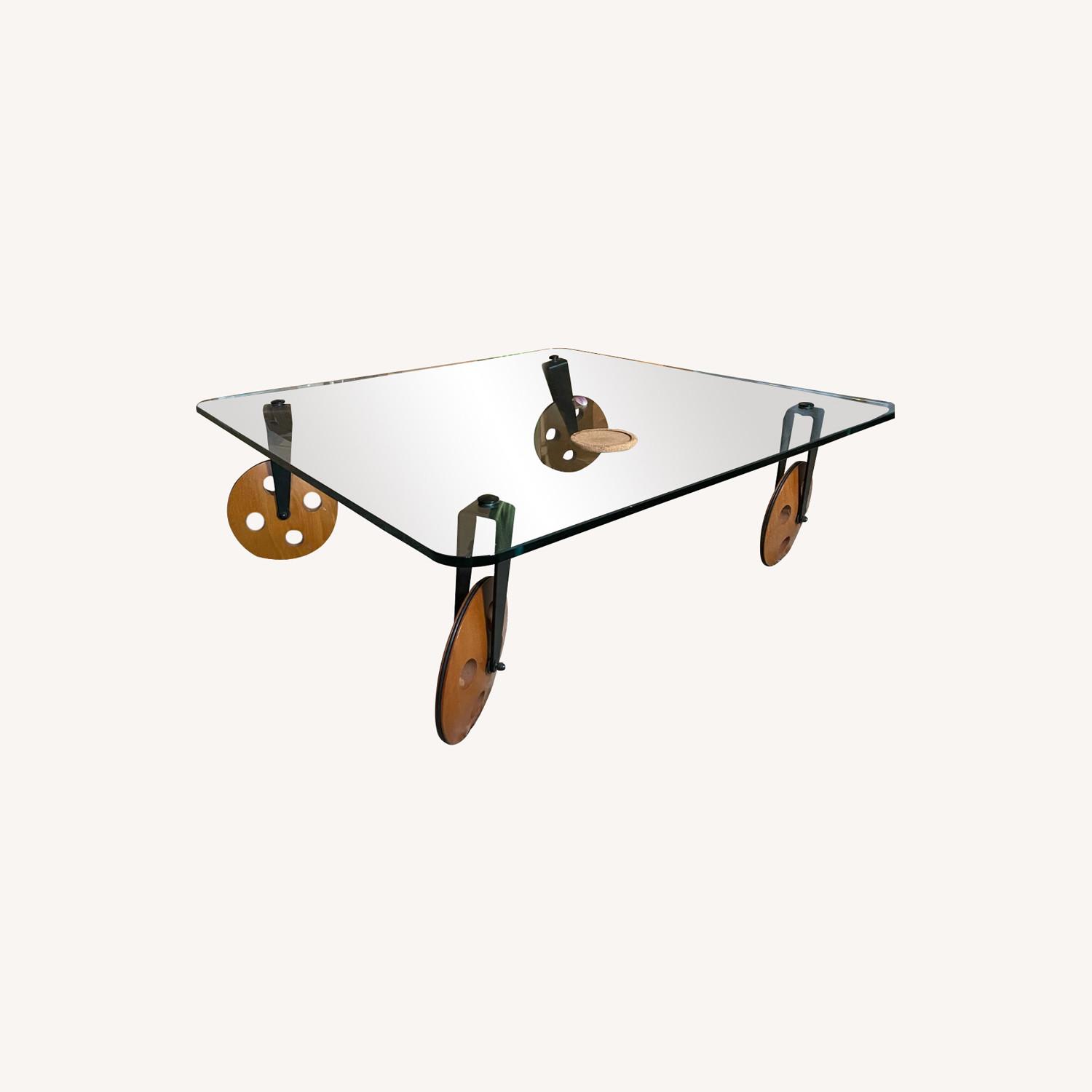 Seller's Notes:Very rare table created by Gae Aulenti for Fontana Arte. Comes with the original tempered glass (with Italian inscription). The glass has some minor scratches from use, the wheels are complete and working. This was my grandfathers coffee table that was passed down to me and means so much. He loved collecting pieces like this and I can't wait for it to go to a great home.