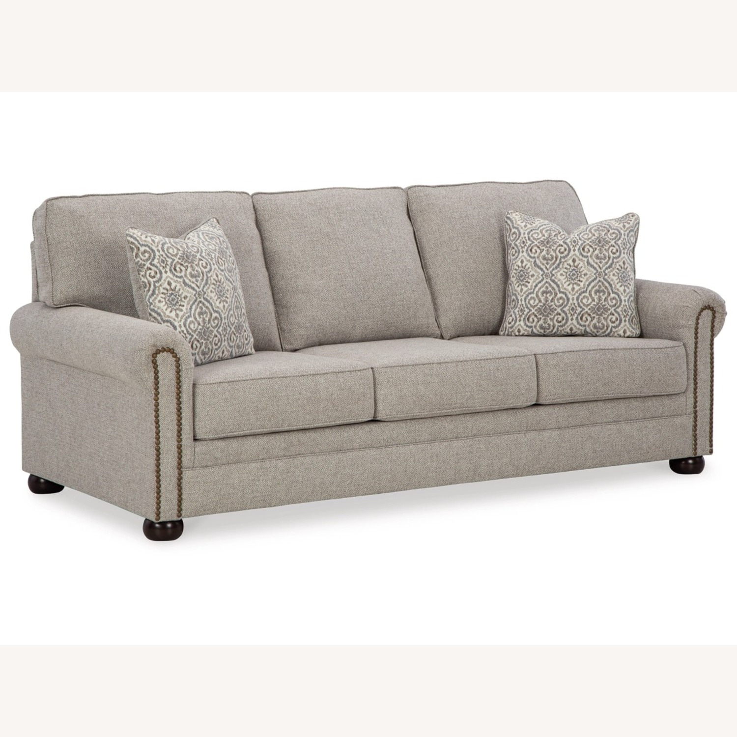Seller's Notes:Inspired by the past but rooted firmly in the present, the Gaelon queen sofa sleeper complements your transitional seating area. Its versatile upholstery is delightfully detailed for a subtle herringbone effect. Designer touches like decorative nailhead trim and bun legs add traditional character. A handy pull-out mattress brings must-have function. With this sofa sleeper's reliable style and comfort, all you need to do is sit back and relax.