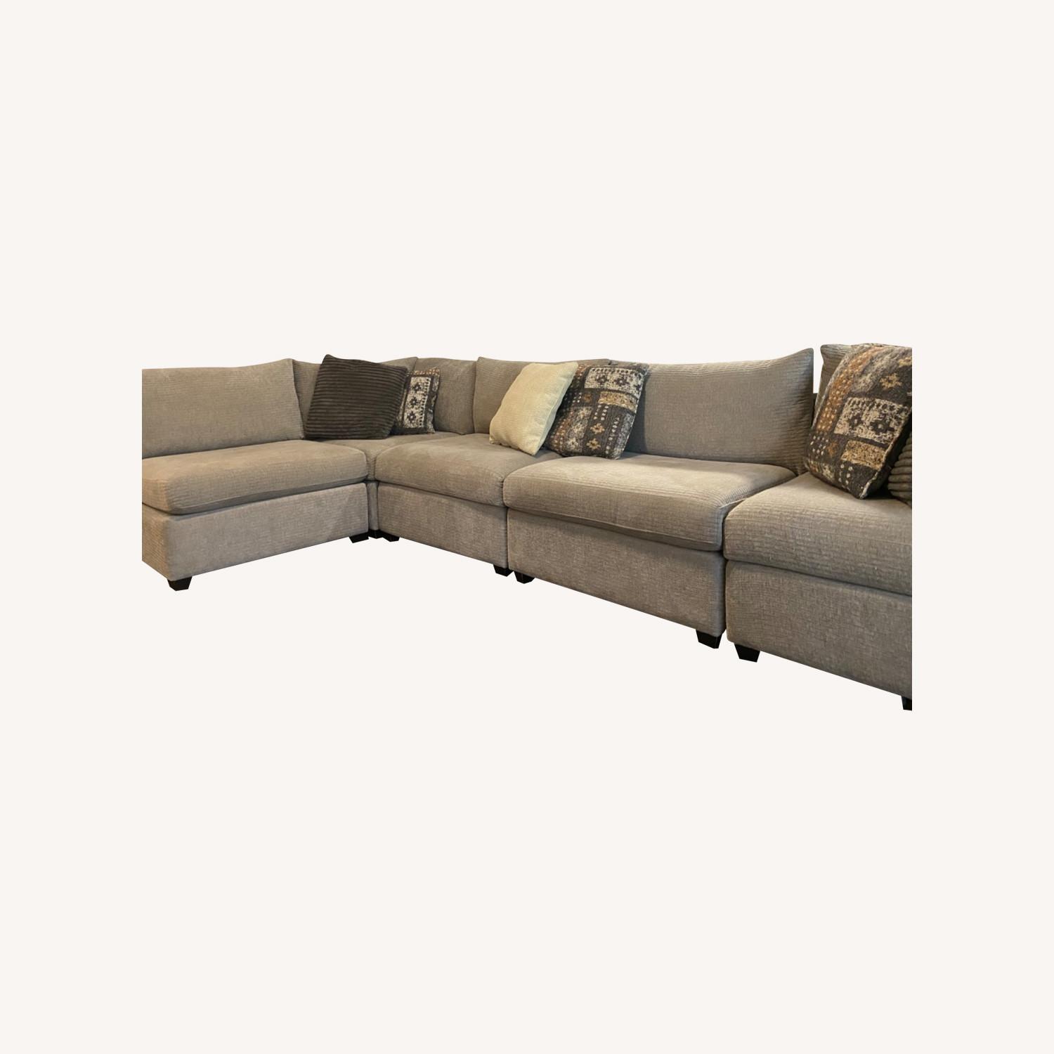 Seller's Notes:Versatile and extremely cozy and comfortable modular couch, featuring 5 separate pieces each 36 inches wide with a seat depth of 37 inches. Bought from Gallery Furniture in Houston in 2020, this couch can be rearranged to fit any space. Neutral tone to match any decor. Good condition.