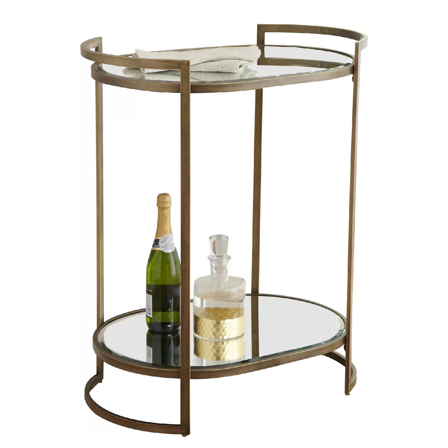 Seller's Notes:BRAND NEW BAR CART IN PERFECT CONDITION! - moving and don’t have room for it - already built /super light - mirror bottom If interested will throw in two free bar stools with it! Will negotiate with price!