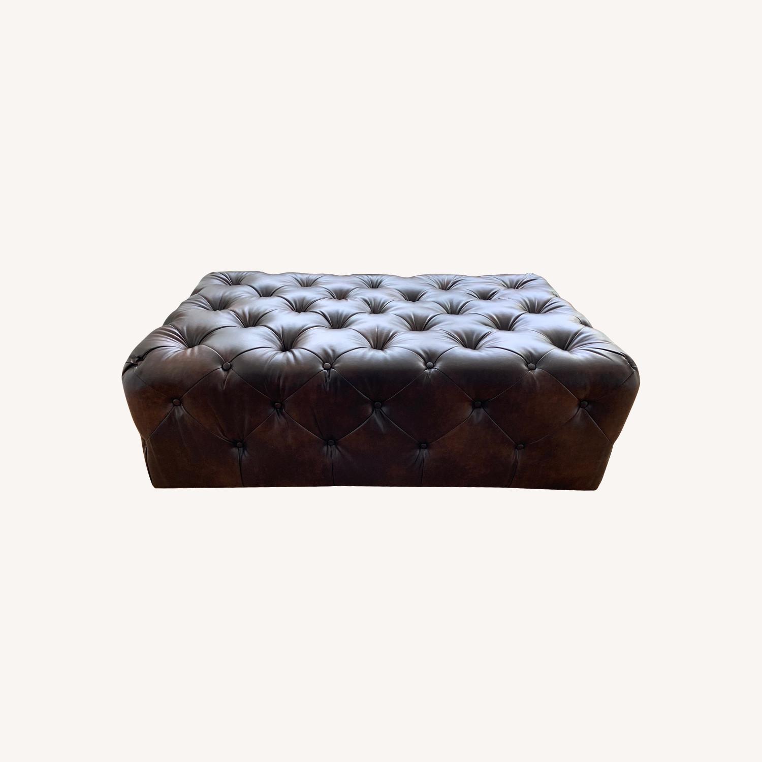Genuine Leather Large Tufted Cocktail Table Ottoman Bench