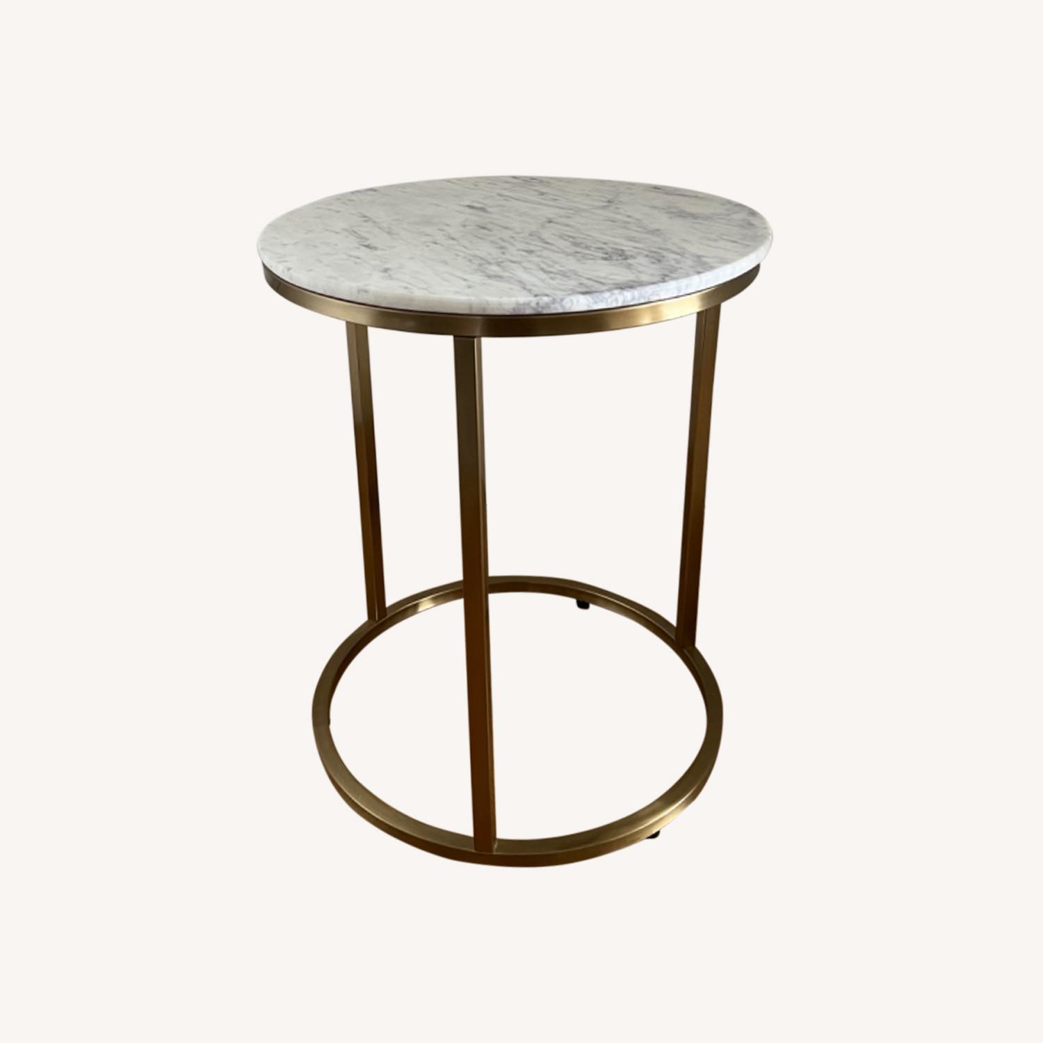 Seller's Notes:Milan Round White Marble and Metal Accent Table from World Market—condition is like new. No blemishes, scratches, etc. This is a beautiful genuine marble table that will complement anyone’s decor!