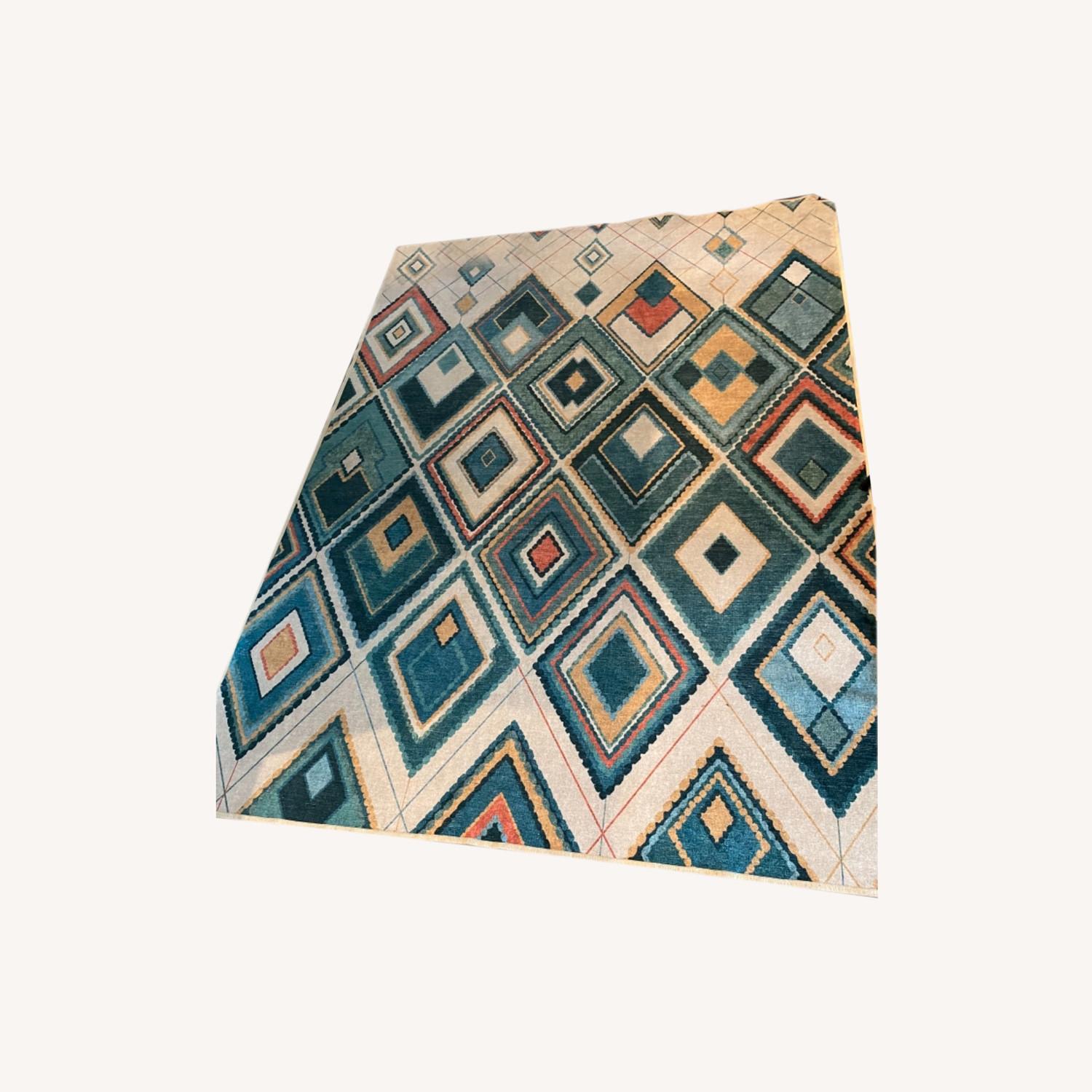 Seller's Notes:This is a ruggable brand rug called the Esra, in the teal colorway. Good condition. Original purchase price $200. Size: 5x7. Please note the ruggable rugs are washable; they come with the removable cover (washable) and a rug pad.