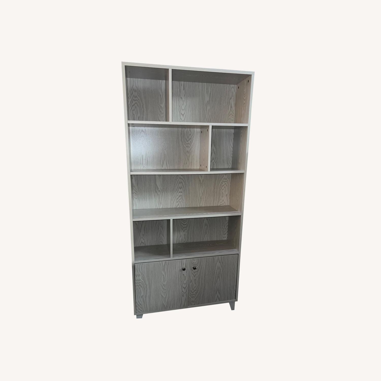 Seller's Notes:Spacious bookshelf that fits lots of books. Purchased two years ago. The color is a grey, white marbled wood, rather than white. Strictly used to store books and the shelf fit in a nook in the wall so had minimal foot traffic exposure. I am moving and must get rid of this shelf. Thanks for taking a look!