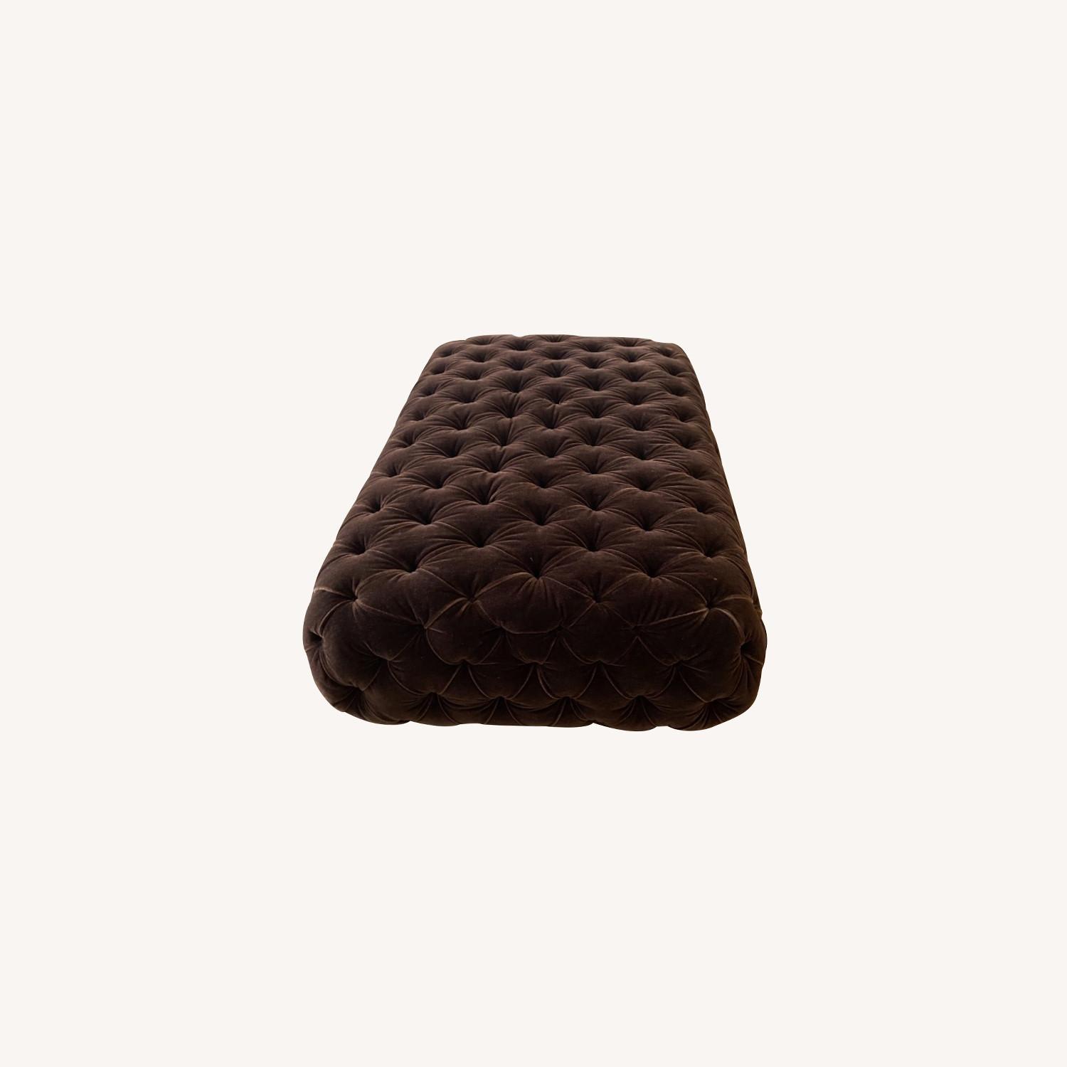 Seller's Notes:Large deep brown velvet tufted ottoman made to order by George Smith. Top quality velvet on a fully tufted ottoman, ideal as a coffee table or to sit on. In very good condition, other than minor reduction in pile in several spots on the velvet and loosening of velvet around 1 of the tufts (pictured). These minor defects are not visible unless you are looking for them!