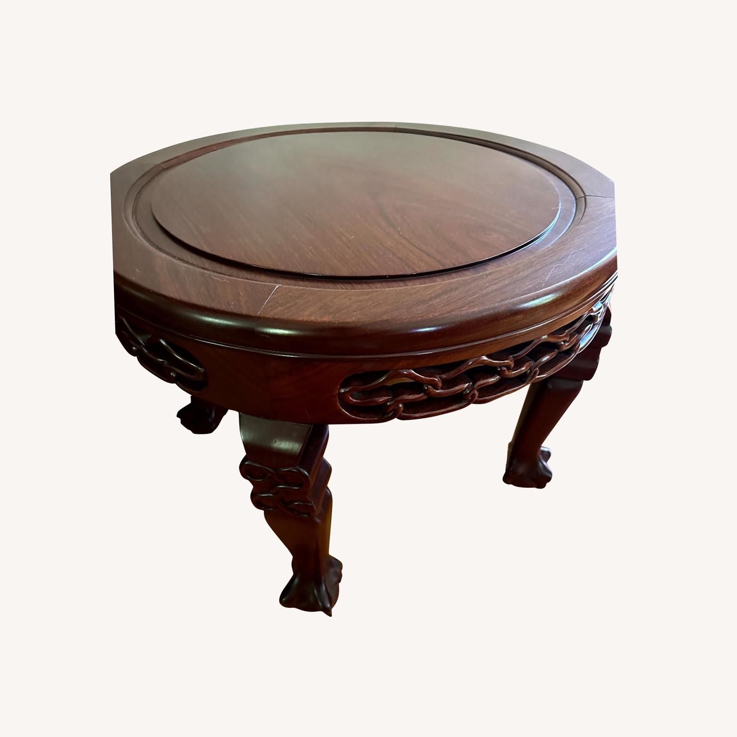 George Zee Carved Mahogany Wood Side Table Pair