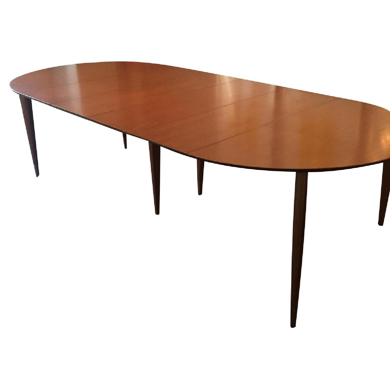 Seller's Notes:Gio Ponti for M. Singer & Sons highly figured Italian walnut round dining table. Solid walnut legs with brass sabots. Table expands to 104" with the addition of four 14" leaves. When fully extended, an additional set of legs slide into place for support. Fantastic mid-century modern Italian dining table. Any imperfections have been repaired. Will sell chairs with item if desired.
