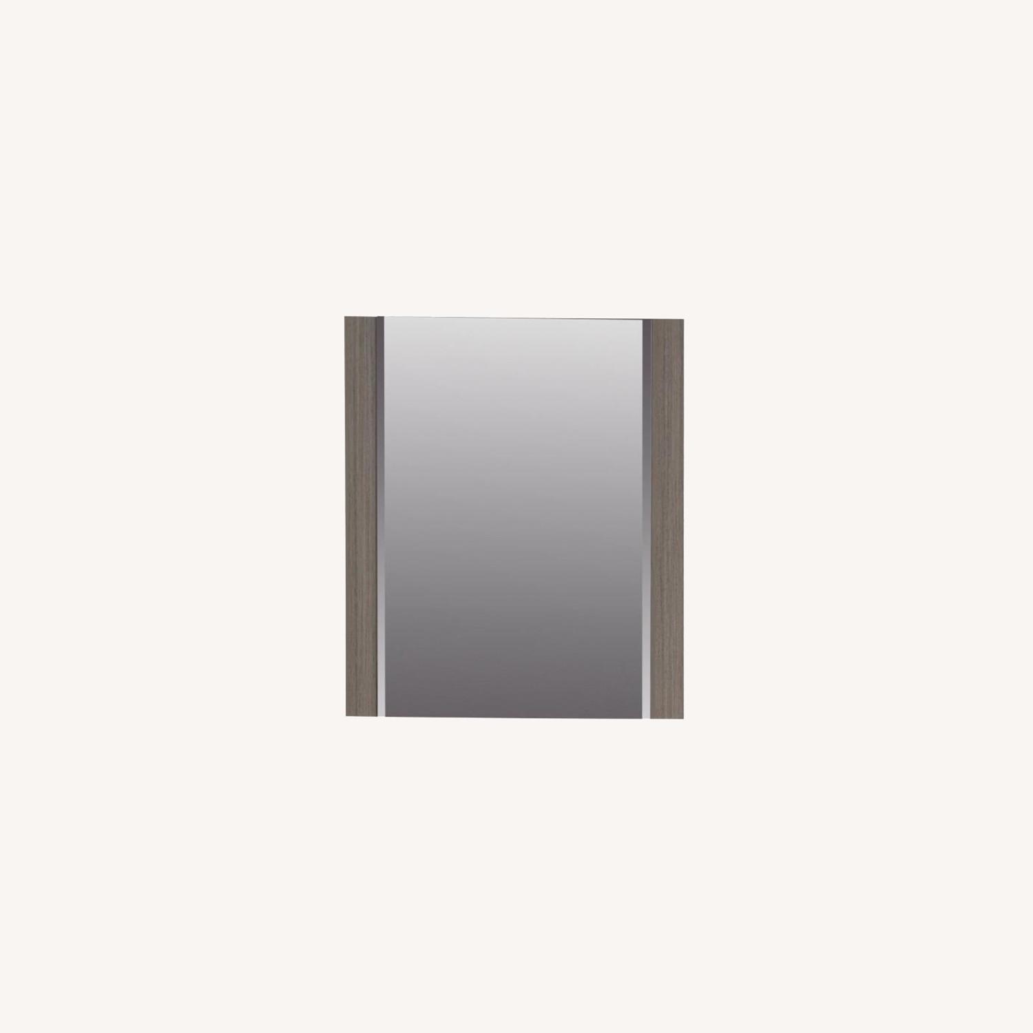 Seller's Notes:Perfect for bathroom or vanity Bought in Home Depot for $99 Great mirror It is darker brown than the picture 18”x16.25”x.5”
