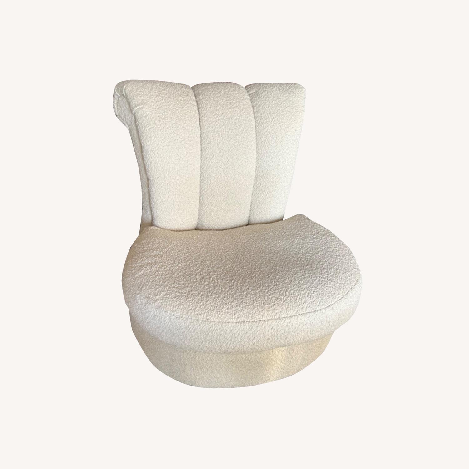 Seller's Notes:Bought these from an antique dealer on Chairish a year ago. Newly redone in cream/off white boucle fabric. The chairs are comfortable and swivel. Very little wear - hardly used. Super fun/glam/hollywood regency style.