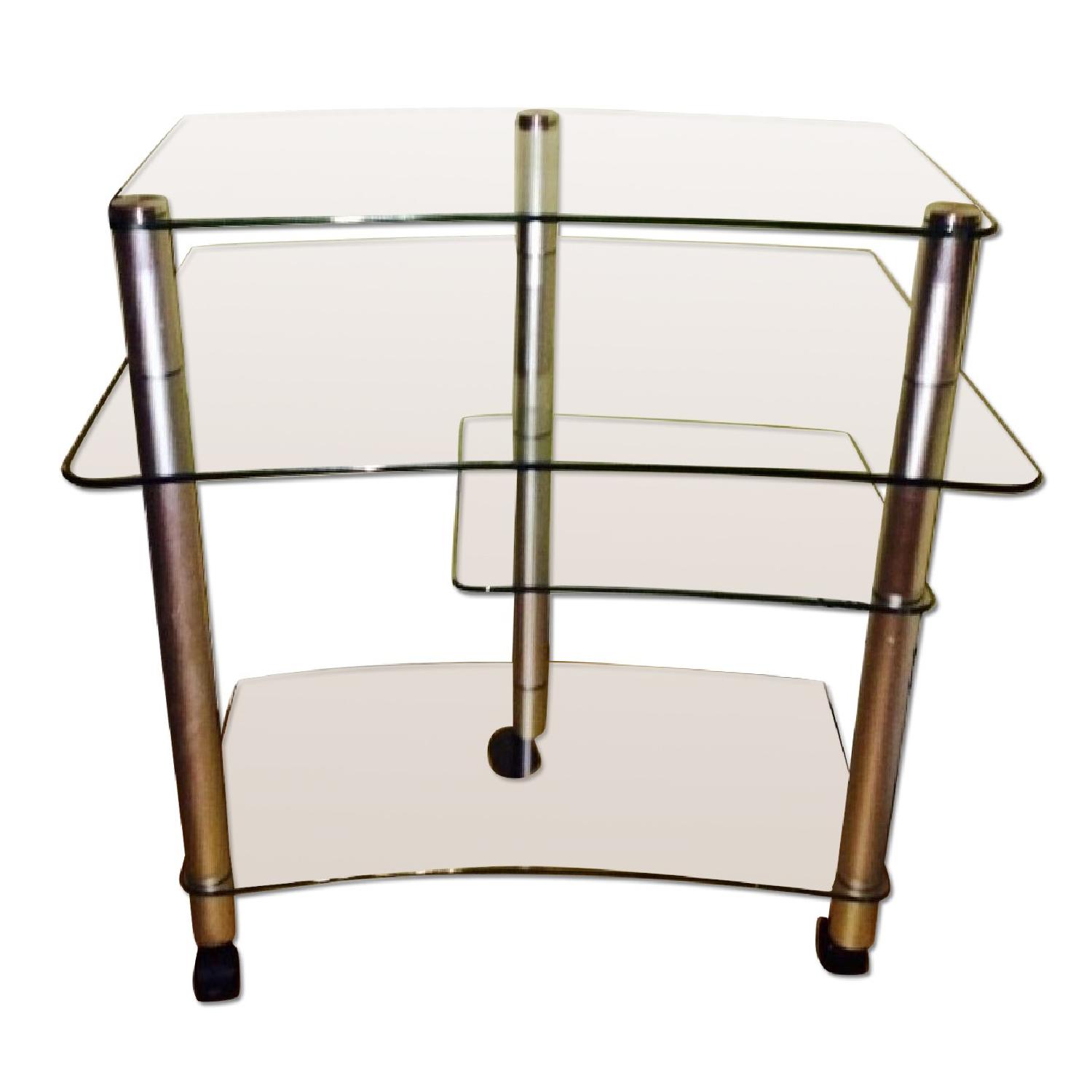 Glass and Silver Computer Table with Wheels